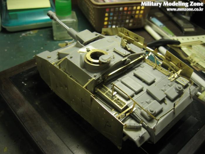 포신과 차체사이에는 생략된 볼트관련 디테일을 1.2미리 프라판으로 자작해 넣었습니다.