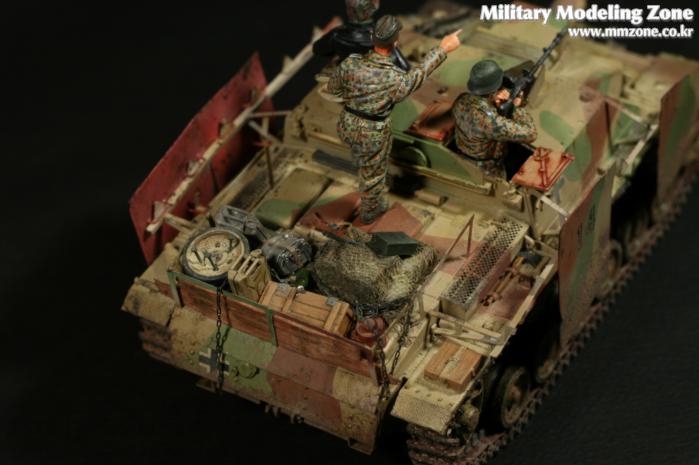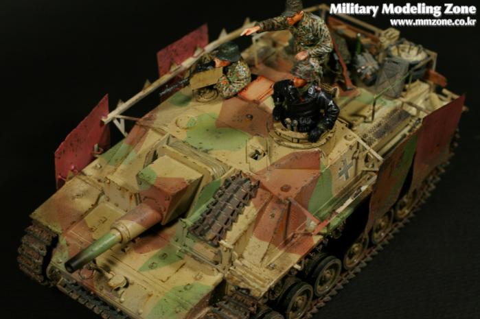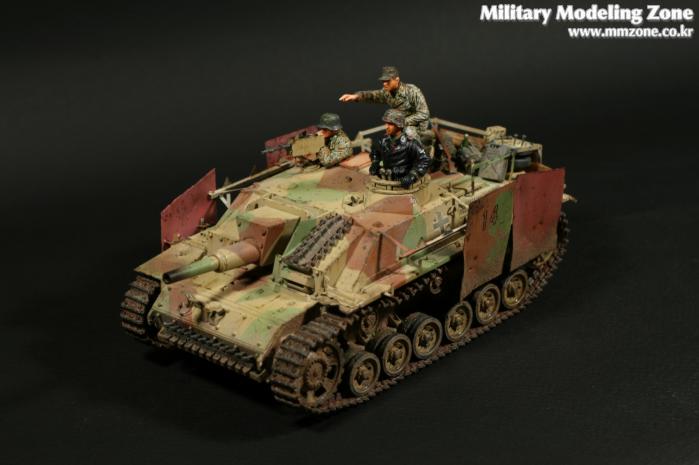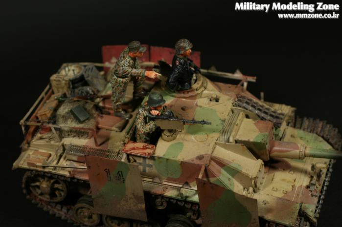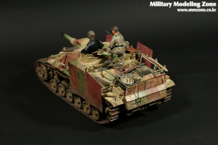 드래곤의 'STUG III Ausf.G'이고 워리어 인형사용했습니다. 품질은 무난한 드래곤 제품이고 요새 신판이 나온거 같던데 차이점은 잘 모르겠네요. 황동판으로 스커트 정도만 자작해 주었고 아크릴에 유화 워싱, 피그먼트 약간 적용했습니다. 프리핸드로 위장무늬 적용하는게 약간 지겨워서 지형을 처음으로 사용했는데 생각보다 귀찮고 난해한 작업이네요.