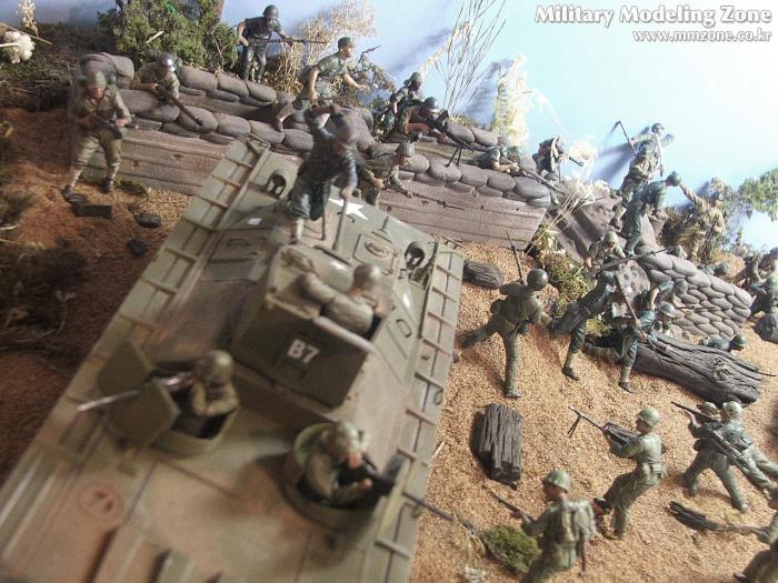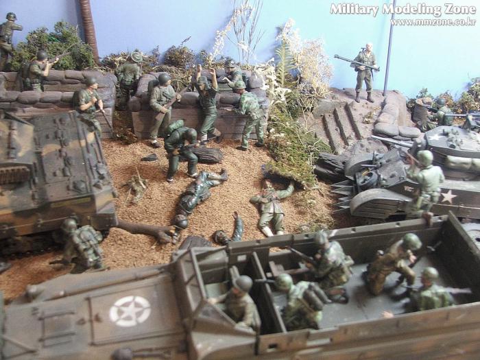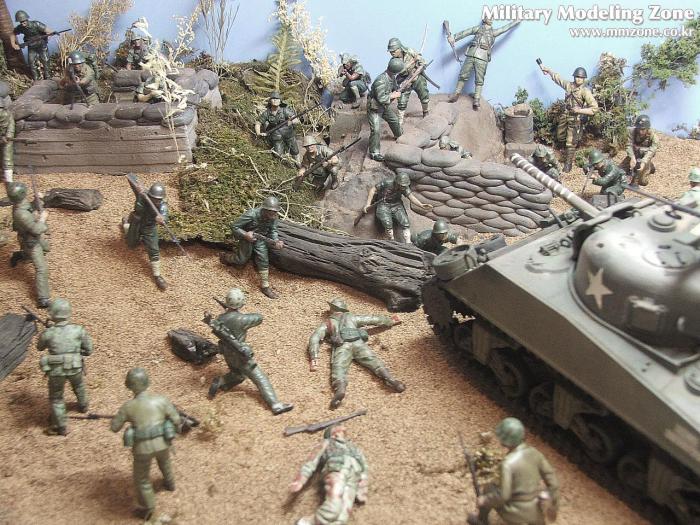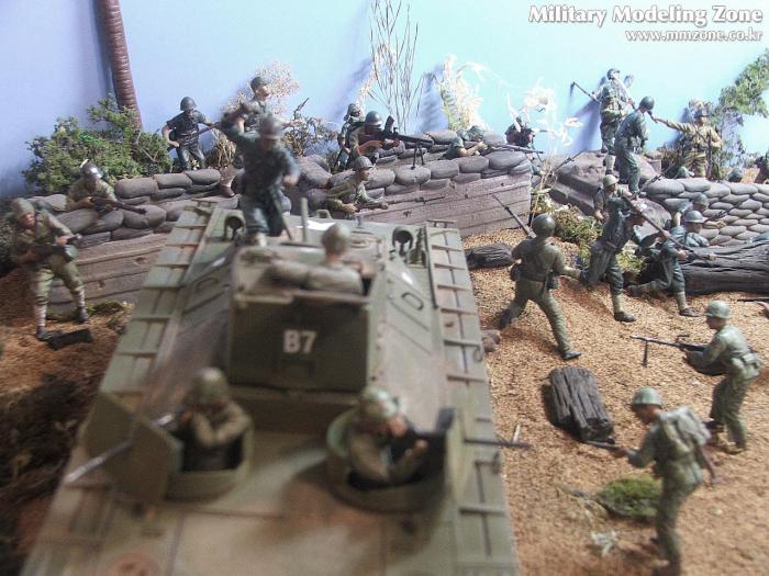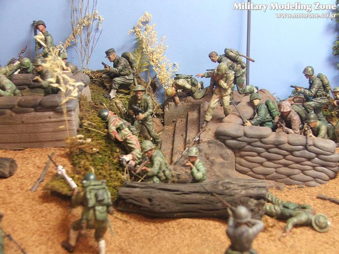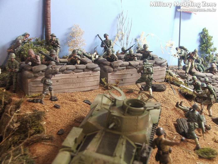 지난번 태평양 디오라마는 준비하는데 2년이 걸렸습니다. 지금은 미국 공수부대 디오라마 준비 중인데 앞으로 1년은 더 기다리기가 그래서 중간에 영국군 가지고 조금 만들었습니다. 솔직히 맘에 참 안듭니다. 요새 다시 모형생활을 뒤돌아 보며 깨달은 것은 너무 많이 만들었다는 것입니다. 제가 만들고도 파악이 안되는 인형들이 많이 있습니다. 오히려 너무 많으니 마음도 예전같지가 않고, 또 큰 디오라마는 만드는 사람도 별로 없고해서 고민중입니다. 가장 큰 문제는 스토리의 부재입니다. 상상력이 더 이상 발동이 안된다는 것이지요. 전에는 스트레스 많이 받을때 디오라마 상상을 하면서 현실을 망각했는데 요새는 좀 상황이 나아졌다고 많이 나태해지는 모습을 스스로 보게됩니다. 그래도 앞으로 월남전이나 대테러전도 해야겠고, 한국전도 해야겠는데 시간은 좀 걸릴 듯 싶습니다. 저도 마음에 안들지만, 앞으로 더 좋은 디오라마를 기대하며 올립니다. 남들처럼 배경을 사진으로 하거나 포샵하면 편한데 웬지 원칙이 아닌것 같아서 꺼려집니다. 처음부터 단품보다는 스토리 텔링에 관심이 많았는데 이제는 있는것 관리하기도 힘들어서 고민 중입니다. 우리집에도 틈틈히 탐내는 사람이 있어서요. 제가 죽기를 기다리고 있습니다. 오래 살아야 할텐데.
