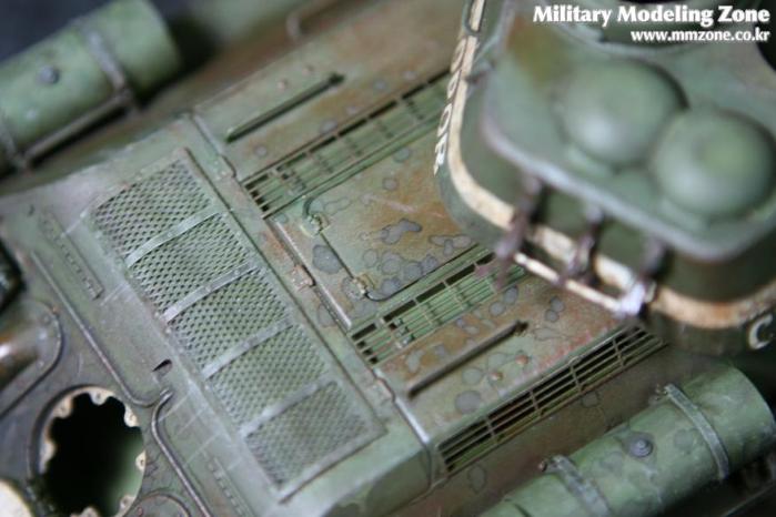 한번 올리고 내친김에 하나 더 올릴까 합니다. 다음 카페 모형터에 활동중인 김성우입니다. 드래곤의 프리미엄키트이구요, 도색은 크레오스 락카 러시안그린Ⅱ로 도색했구, 미리 검정색으로 명암도색을 했습니다. 프리미엄 키트 답게 엄청난 에칭에 진절머리를 쳤지만 완성후 효과는 만점입니다. 면에 따라 필터링을 다른 색으로 줘 봤습니다. 그리고 마지막 녹표현은 테스터 러스트로 했습니다. 워싱 및 필터링을 모두 에나멜로 표현 해 봤습니다. 봐주셔서 고맙습니다.