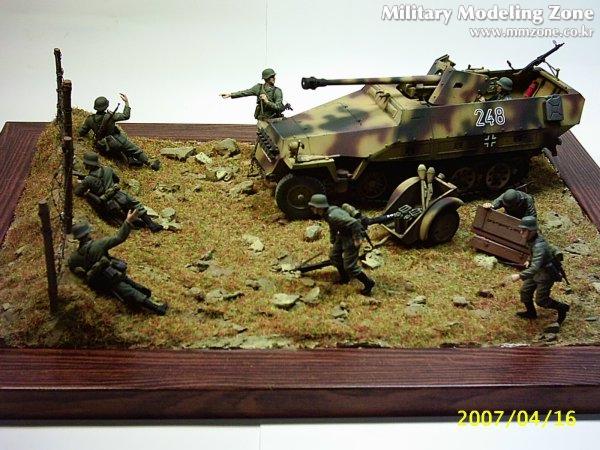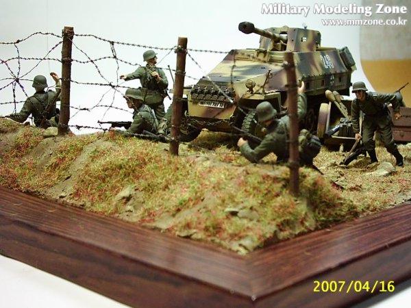 드래곤제 하프트랙d형을 사용했습니다. 보병도 4명 포함되어 있고 해서 디오라마로 한번 만들어 봤습니다. 그외에 트라이스타보병과 군제 철조망등 사용했습니다. 디카가 6년쯤됐는데 아무래도 흐릿한게 한계네요. 모형찍을때 쓸만한 디카 추천해주시면 감사하겠습니다.^^