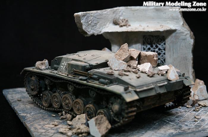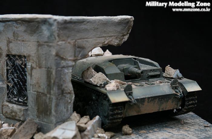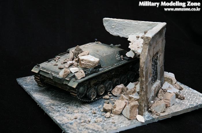 건물은 우드락위에 석고를 입혀서 만들었구요. 잔해들은 석고로 만들었습니다.
