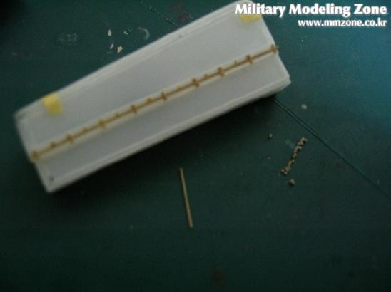 붙이는 면이 경사가 져서 만들면서 좀 힘들었습니다..실물 사진을 보면 경첩이 달려 상하로 열리기 때문에 경첩 부분 디테일을 만들어 붙였습니다...넌너를 늘인것으로 볼트를 하나 하나씩 만들어 붙이는데..무슨 수련 하는 기분이었던....-_-... 忍 忍 忍...