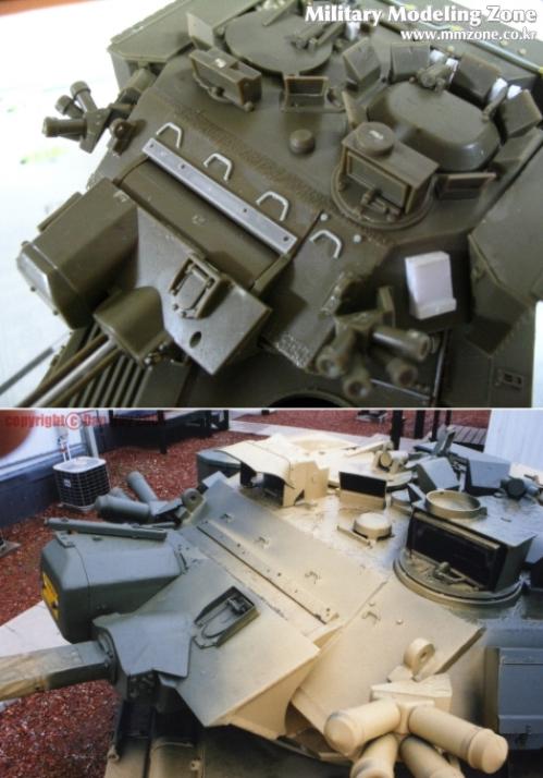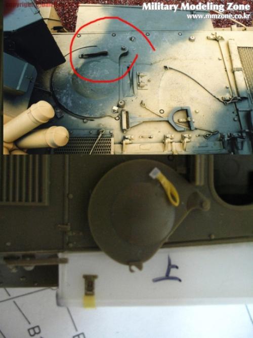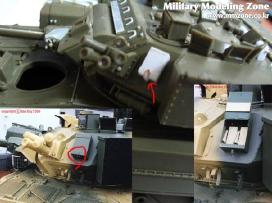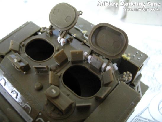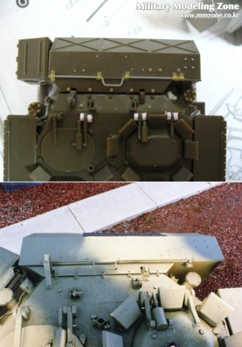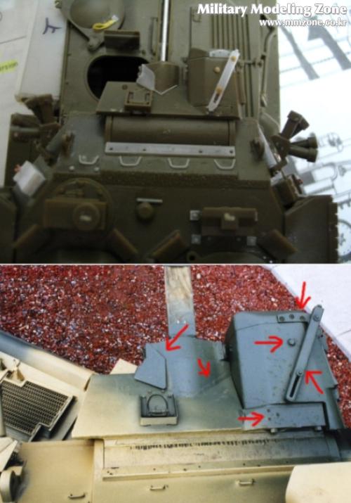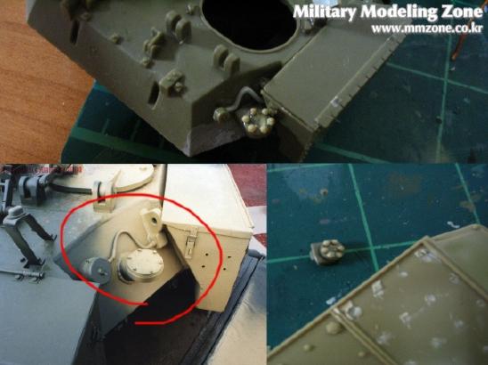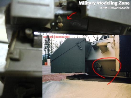 포탑 해치를 가동되게 만들려다가 기존에 있는 부품 날려먹고 ...그래서 플라판으로 가동부를 다시 만들어서 3부분을 달아주었습니다....맨 왼쪽만 기존 부품입니다.....아래의 실물 사진을 보며 또 정신수련을-_-....빠진 볼트며 철선(?) 등을 워리어 증가장갑부품에서 가져온 볼트와 런너 늘린것으로 디테일업~!.....나름대로 만족합니다
