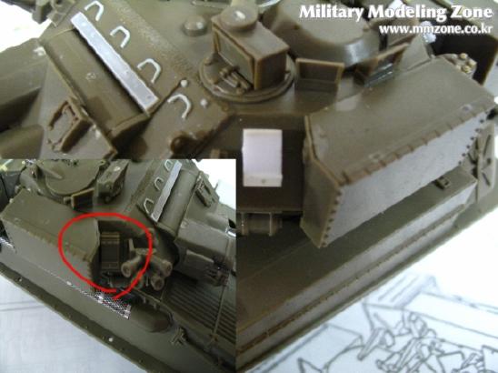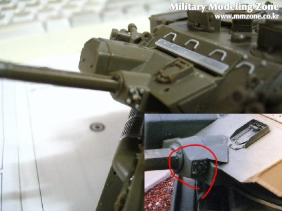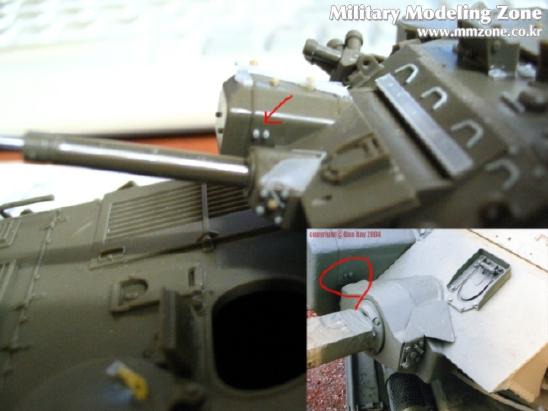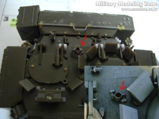 포탑의 전면부도 빠진 디테일이 꽤 돼서 실물 사진상의 화살표에 있는 모든것을 플라판과 런너로 표현해 주었습니다.