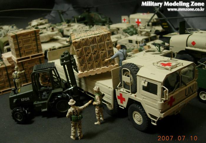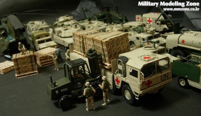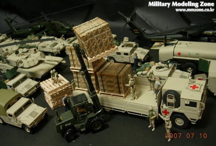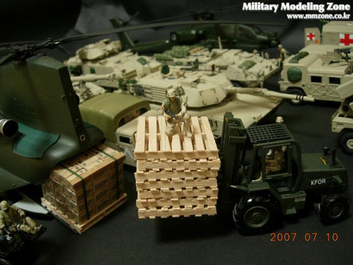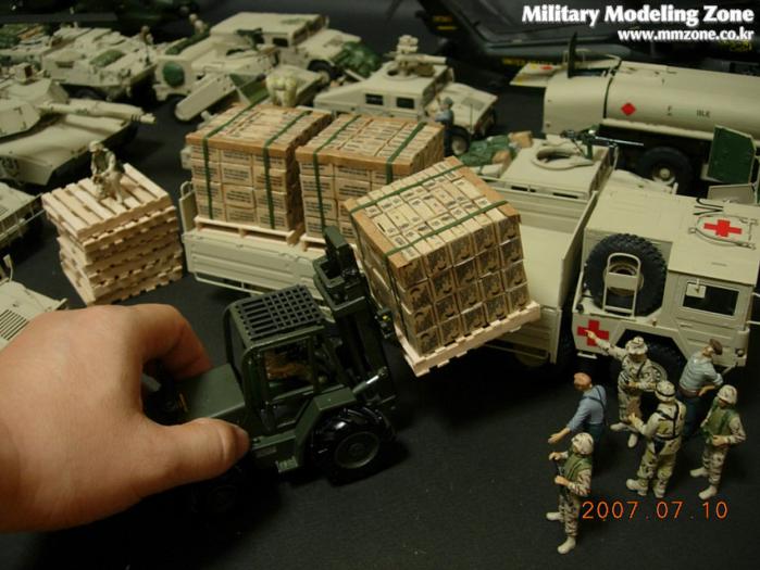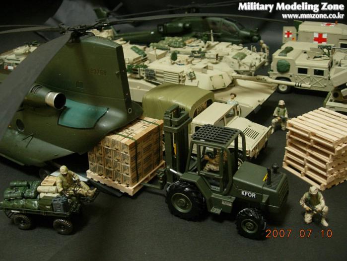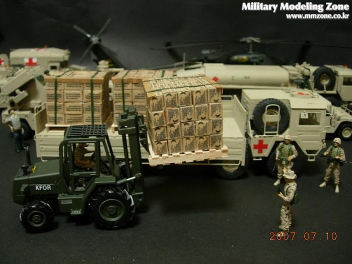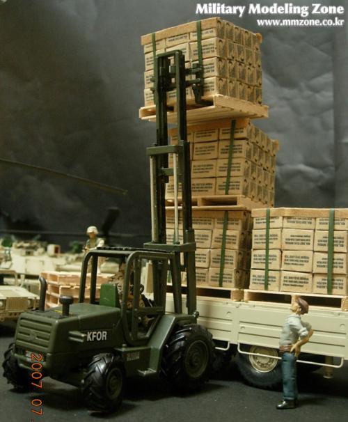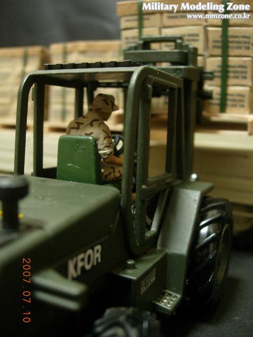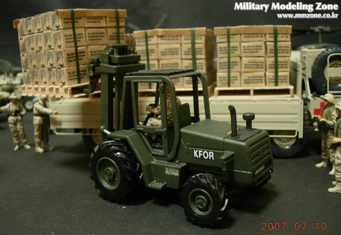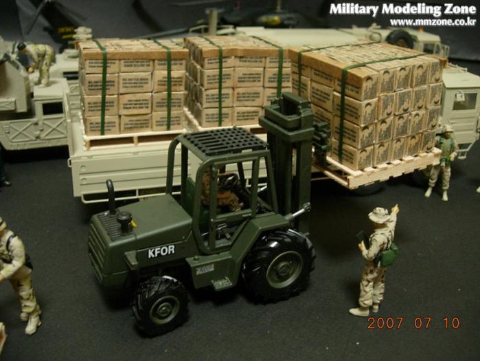 지게차는 JOAL이라는 스페인의 건설 장비 미니어쳐 전문회사의 완제품을 이베이에서 구입한 후 군용 지게차로