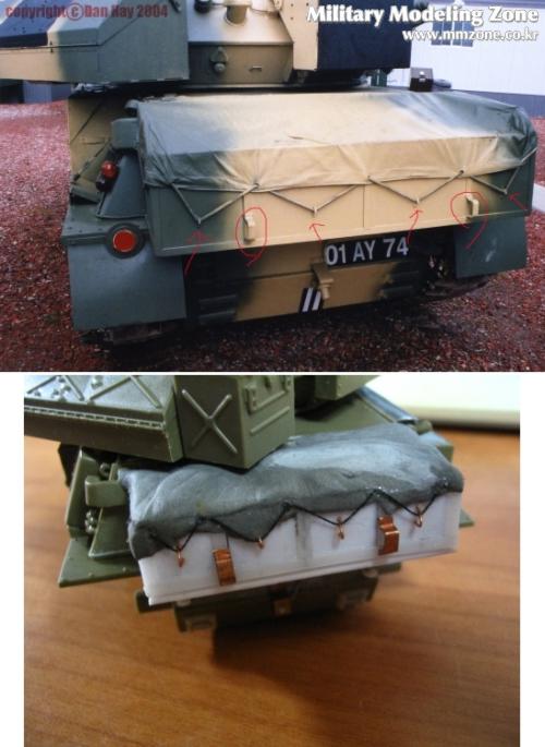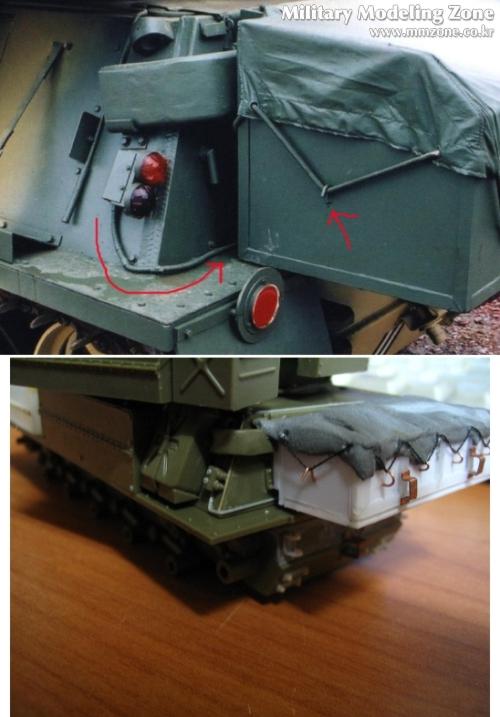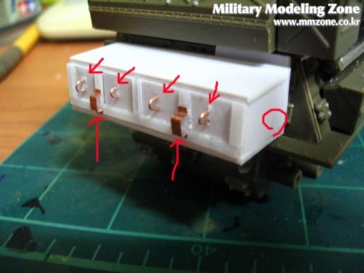 실차 사진을 보면서 화살표로 표시된 측면 연결줄 부위의 고리를 재현하고 후부 라이트의 배선을 해주기로 하였습니다.