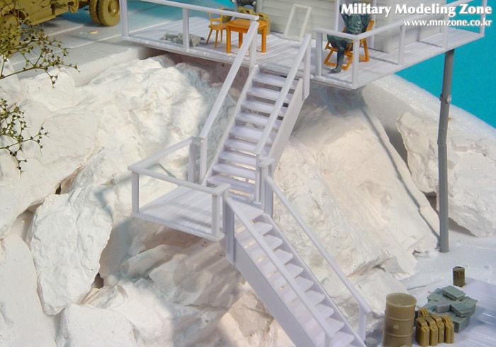 판자집과 선착장?, 계단은 뚜께 1mm, 0.5mm, 0.3mm 플라판을 사용하여 자작하였습니다.
