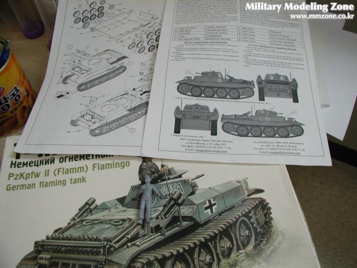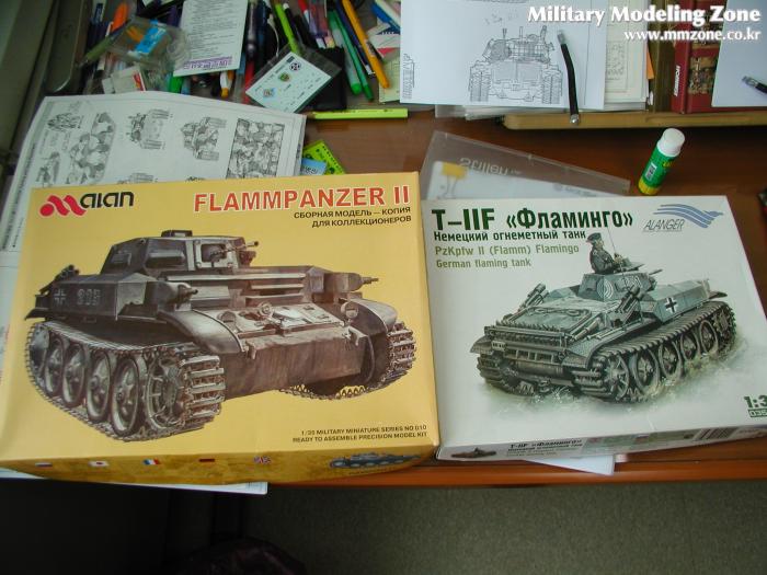 Rare item 이라 리뷰도 없고... (작례는 3례가 있네요 ^^*) 해서 실력은 미천하여 작품 자랑은 못 하것고 해서 간단한 킷 리뷰(글재주도 없고하니...)가 되겠네요. 시작은 이 놈을 어쩌다 구하게 되어서(푸리울 세일한다고 해서리.. 그냥 덥석 물어왔답니다... 초보티나죠.. '푸리울이 좋은데 구하기도 어렵고 비싸다' 라는 말을 어디선가 많이 보아서 그냥 고민 안하고 집어들었답니다.. 미쳤지 ^^;) ... 이 트렉에 맞는 전차를 찾아보니 사진 속의 Marder II.. Pz. II D형 그리고 2호 D형의 variation인 Flammpanzer ...그 중에서 국내 온라인 샾에서 구할 수 있는 것은 2호 D형의 변이형인 화염방사기 전차 Flammingo 뿐.. 나머지는 품절, 절판.....OTL
