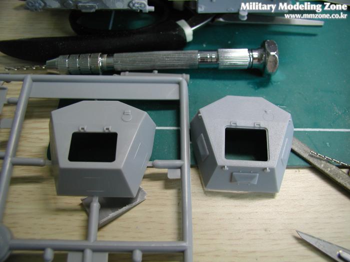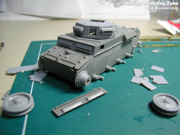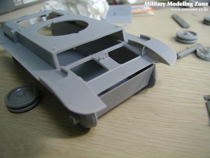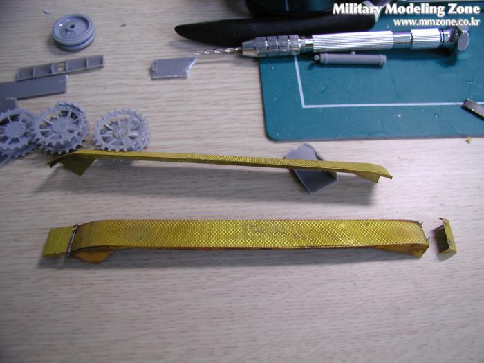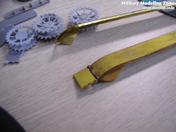 알렌져 몸통에 일체되어 사출된 Flammpanzer의 특징인 앞 부분 휀더.... 실차 사진을 찾아보니 2호 D형의 휀더를 그대로 사용한 고증 사진이 있어 보이어사의 휀더 에칭을 개조 없이 그대로 사용하기로 했다.