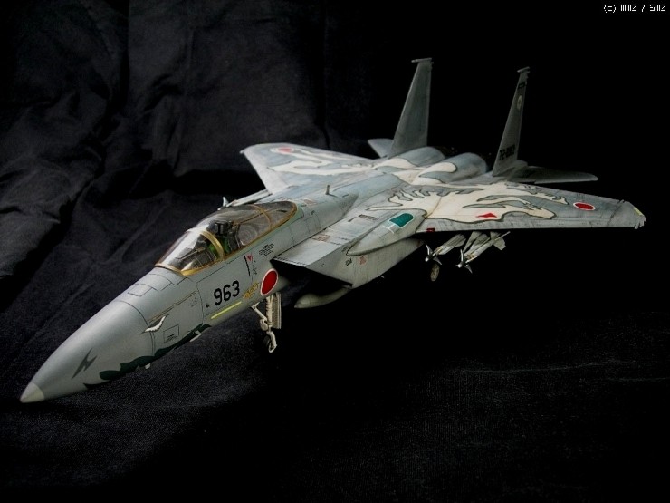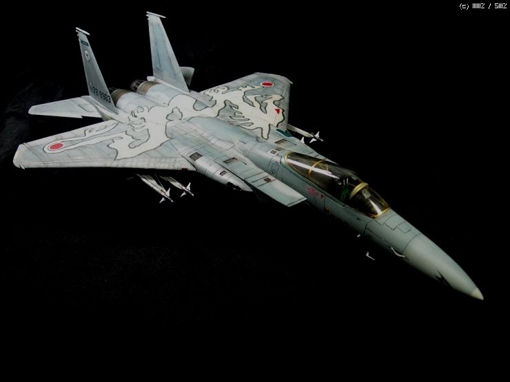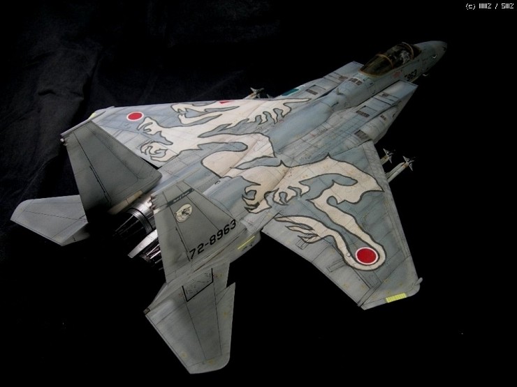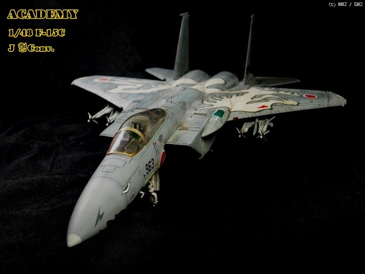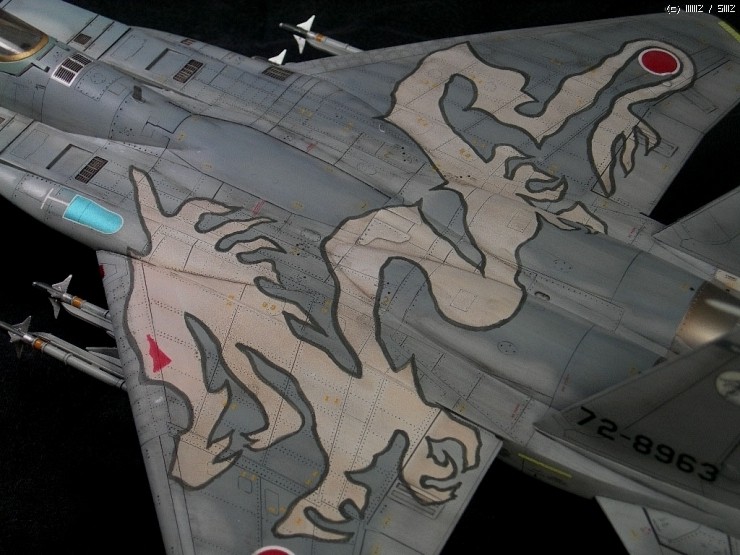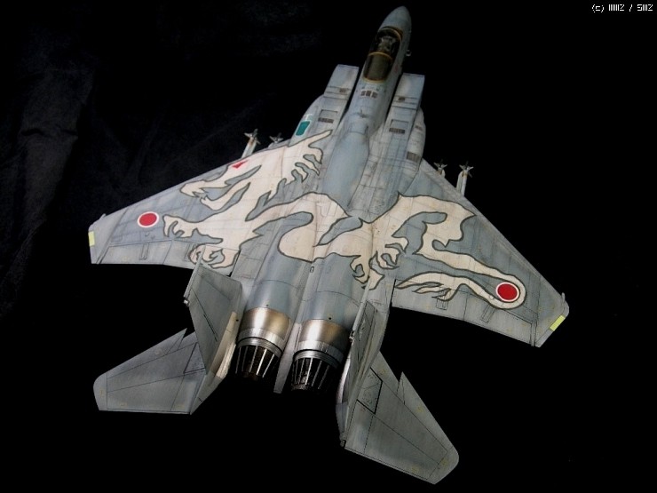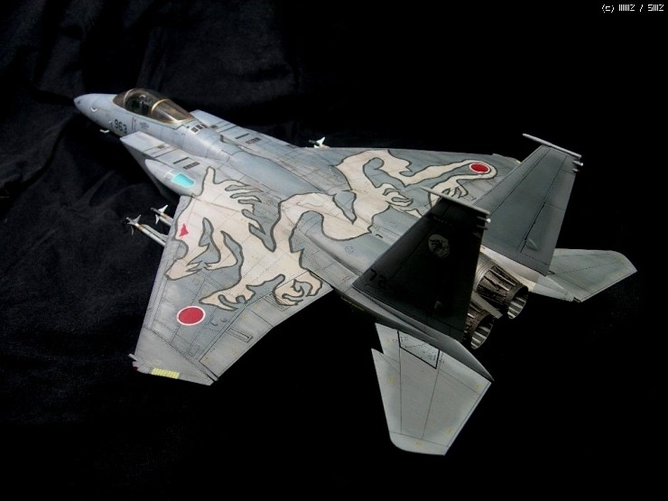 아카데미 1/48 스케일 F-15C형을 일본 항자대가 운용하는 J형으로 만들면서 백룡을 상면에 넣어 봤습니다.
