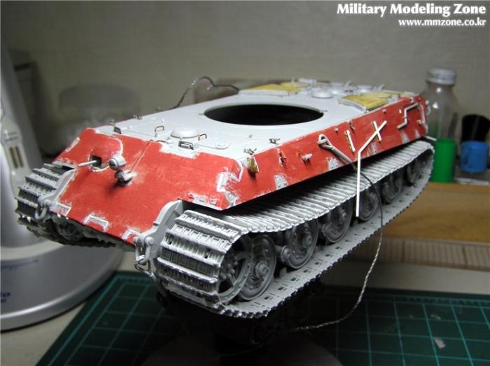 이거 조립할때만해도 별다른 지식도 없고 재료도 없고 그냥 설명서대로만 만들어놨었는데 비넷이라 하더라도 어떤 컨셉을 설정하자니 적잖은 부분을 다시 만져?줘야 할 필요성이 생기더군요, 1945년초의 동부전선 어딘가에 버려져 있는 킹타이거를 구상하고 있는 관계로 모든 장구류는 빼버리고 고정구들만 남겨 놓았습니다. 고정구만 라이언로어제 별매 에칭 고정구로 몇군데 대체해주고 나머지들은 전부 에칭쪼가리나 플라판 등으로 자작해 주었습니다.