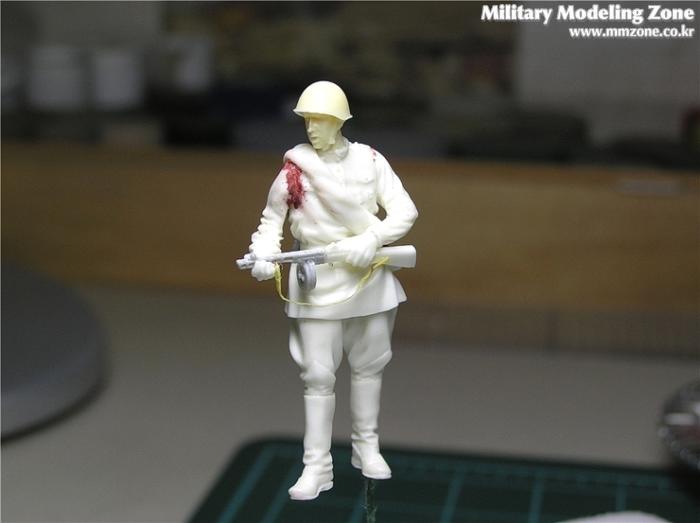 차량만 달랑 올라가면 좀 심심할 것 같아서... 전에 장터에서 구한 레진소련병사인데 크기가 좀 크네요, 1/32에 가까운 듯...