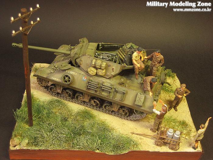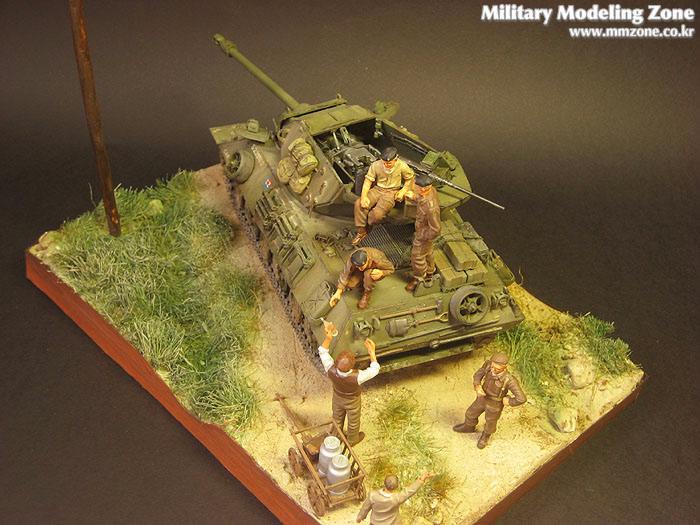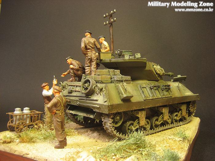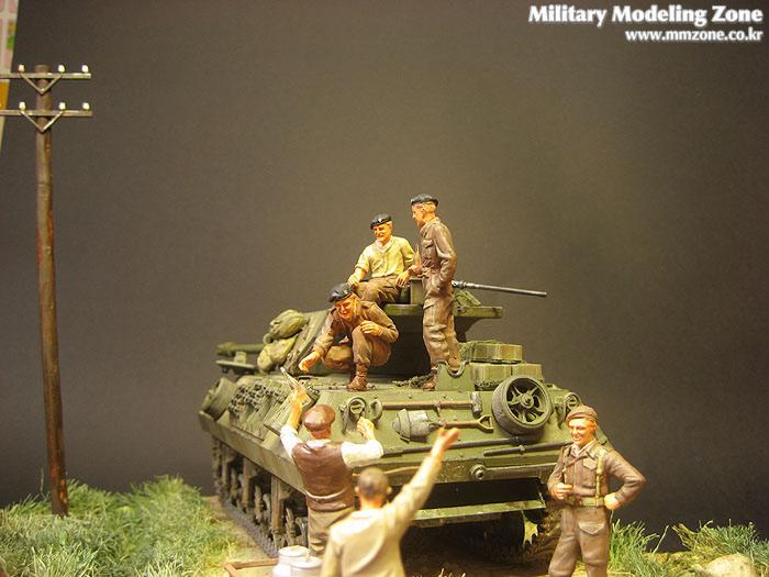 아카데미 아킬레스와 타미야 처칠에 있는 영국군 전차병입니다. 전차병은 별매로 나와있는 제품을 구입하였습니다.(타미야 별매 인형들은 이런식으로 죄다 발매되면 얼마나 좋을까요) 손흔드는 아이는 프레이져 인형중에 한마리 입니다.