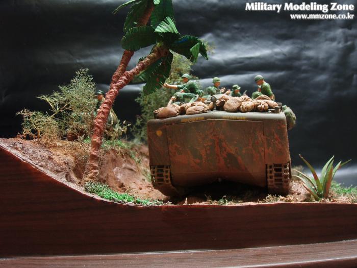 야자수 나무처럼 생긴것은 철사에 실을감아 색칠하여 만들어 주었으며 전면부의 진흙 표현은 G-COAT에 조색을 하여 그져 마음 닿는 대로 튀겨주었습니다.