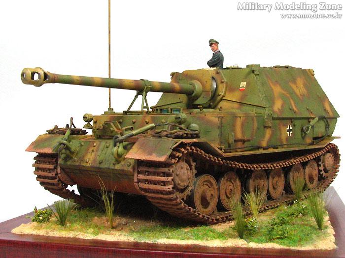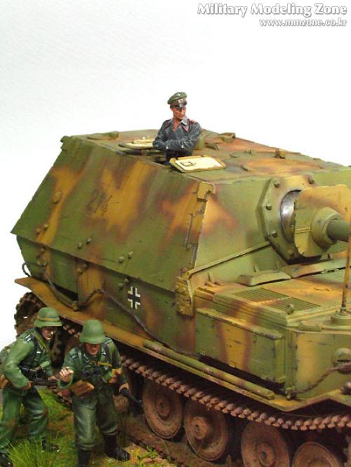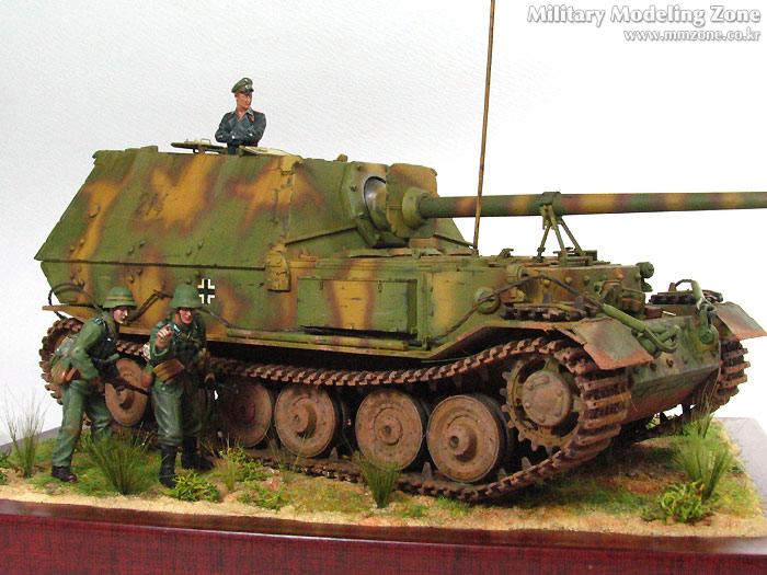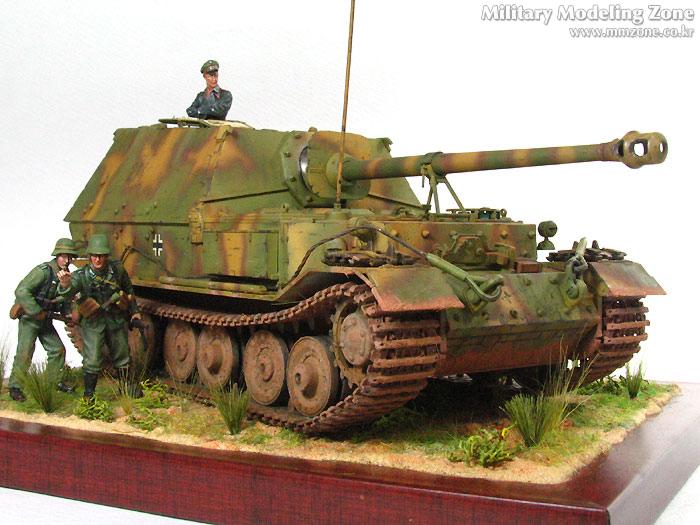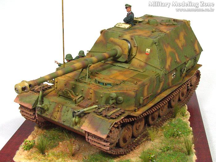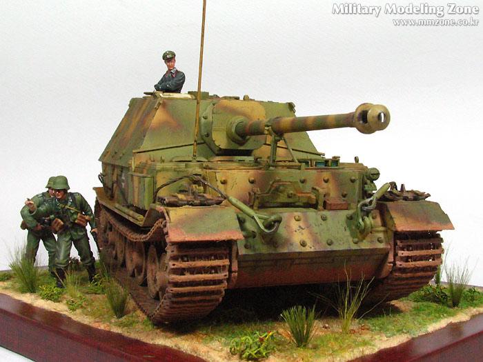 험브롤 도색 후 유화 워싱, 험브롤 하이라이팅, 치핑, 다시 유화 워싱, 그후 피그먼트 조금. 지면은 G-Coat로 풀은 모형용으로 적당히 심어주었습니다. 사진을 보면 엄청 더 심어줘야겠더군요.