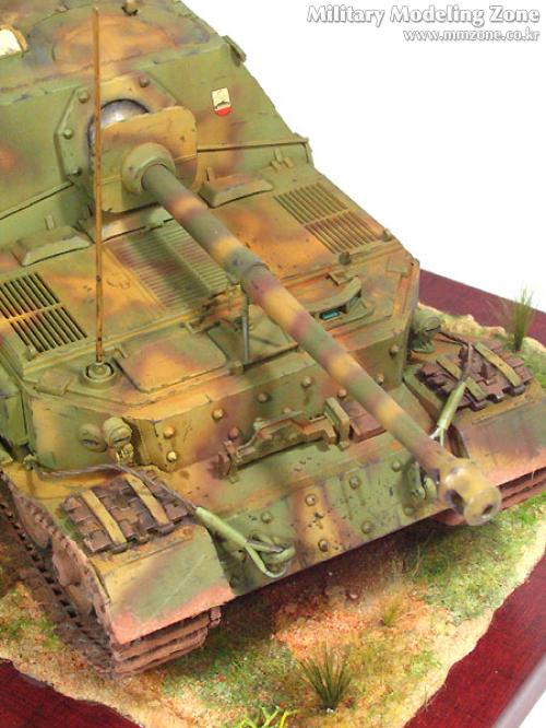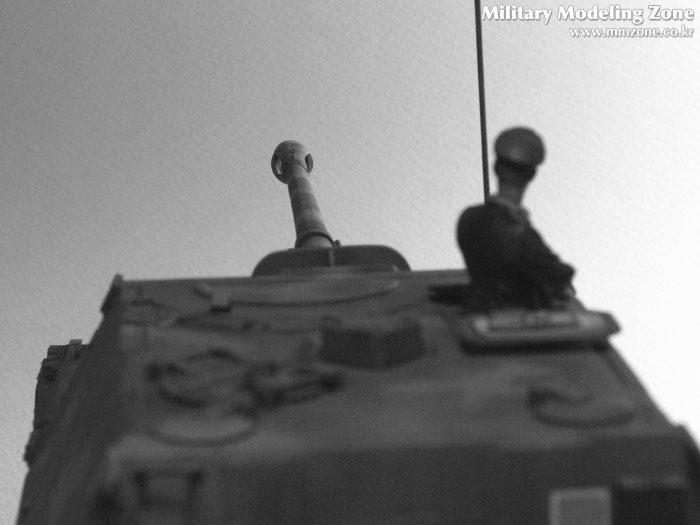 지면 생각을 하지 않았다가 만들어서 캐터필러와 지면이 좀 따로노는 감이 있습니다. 포신 고정랙도 부품 파손으로 자작해서 어쩔 수 없이 붙여버렸습니다. 작전 중이므로 틀린 부분이지요. 안테나도 조금 굵은 느낌입니다.
