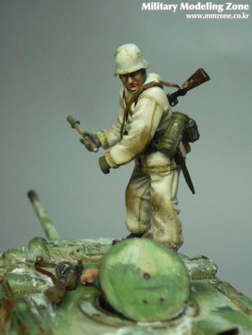 디오라마의 배경은 독소전 초반을 무대로 했고 독일군 진지를 돌파한 kv-1 전차를 pak로 저지에 성공한 독일군들이 kv-1 전차내의 승무원들을 수류탄(감자으깨기 ?) 공격으로 마지막 확인사살한다는 내용입니다.