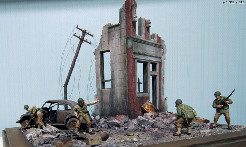 그리고 바닥이 넣무 횡하여 석고로 부서진건물 잔해를 추가해 보았습니다. 병사들은 기성품에 도색한 것입니다...