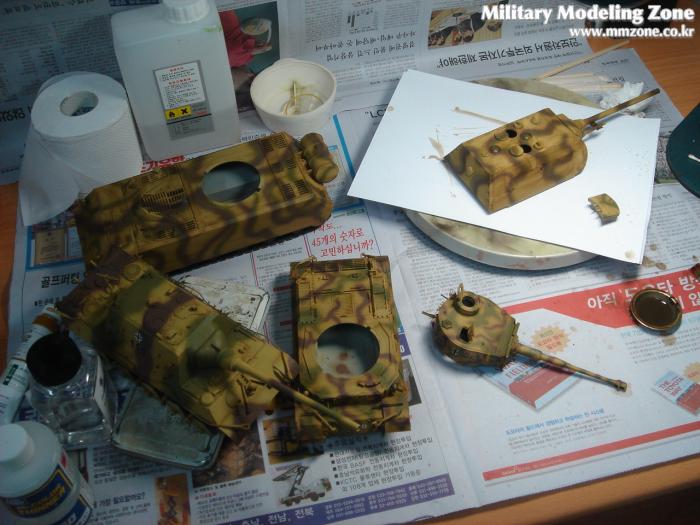 사실은 Tiger (P)뿐만 아니라 JagdTiger : Henschel production type과 Maus의 워싱작업도 함께 진행해주고 있었기에 함께 사진에 잡혔습니다.