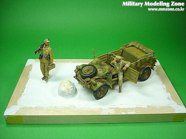 도색은 다크옐로우(TS-3) 기본 도색에 레드 브라운과 러시안 그린으로 3색위장을 해주었으며 그위에 유화 워싱과 치핑을 일부 해주었습니다.. 사막을 배경으로 한 비넷작품이어서 전체적으로 데저트 옐로우를 에어브러쉬로 얇게 뿌려주고 유화로 드라이브러싱을 하였습니다..