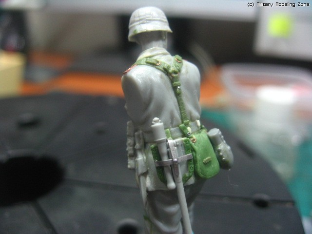 호넷제 민자 머리에다가 모자를 씌워 줍니다..사관용으로 지급된 모자인데 챙이 가죽이 아닌 천으로 된 사관용으로 지급된 놈을 표현한겁니다.장교들 사이에 인기가 많았다더군요