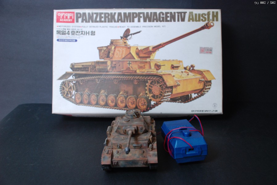 며칠만에 다시 자료 올립니다. 오늘 소개할 킷트는 아카데미제 1/35 독일 4호전차 시리중 하나인 H형입니다. 작업완성은 1년이 넘은것 같은데 이번에 깔끔하게 다시한번 촬영해서 올렸습니다. 역시 고전프라로 기초해서 작업하였습니다. 사실 어렸을때 독일전차하면 타이거와 롬멜 이외에는 별로 인기가 없었던 킷트였습니다. 당시 가격도 타이거에 비해 조금 저렴했었던 놈이었죠.. 전후좌우와 전후진 방식으로 하여 두가지로 출시하였습니다. 그중 하나인 26모터로 동작되는 전후진 방식입니다. 전후좌우진과 달리 전후진방식으로 구성되는 메탈기어박스로 되어 있어서 잔고장의 원인이 절대없는 킷트였죠. 전후좌우방식은 수지부품으로 기어박스가 되어 있어서 동작시키기에는 다소 무리가 있었던 기억이 납니다. 이렇게 고전프라를 제 나름대로 하나하나 완성해서 올리니 기분은 좋습니다. 예전에 가지고 놀았던 장난감들이 이렇게 좋은 작품으로 남아 있는 사실이 고마울 따름입니다.
