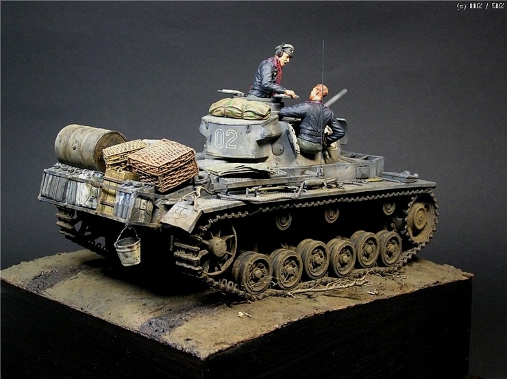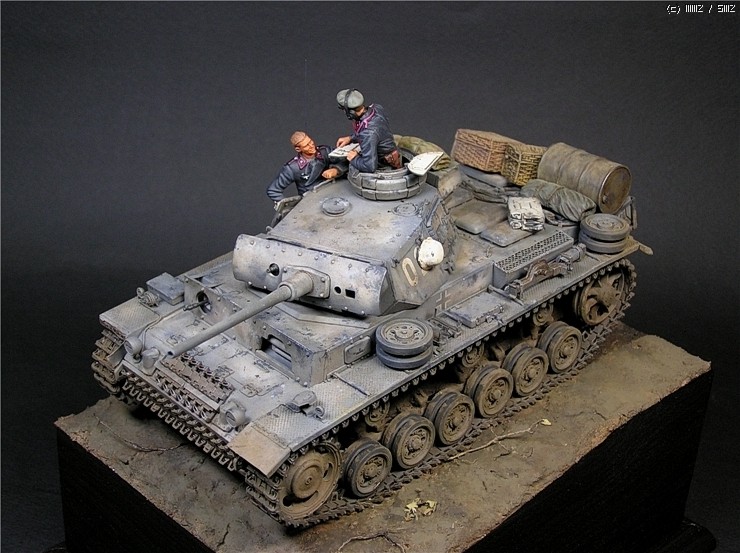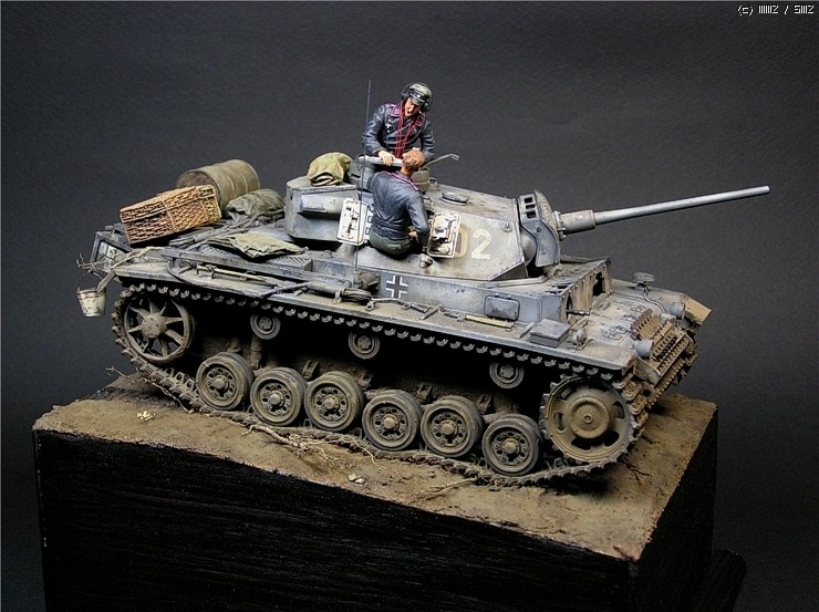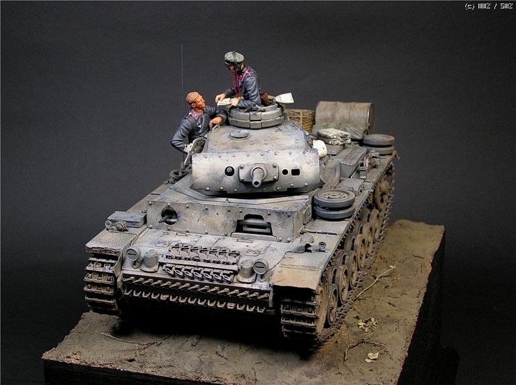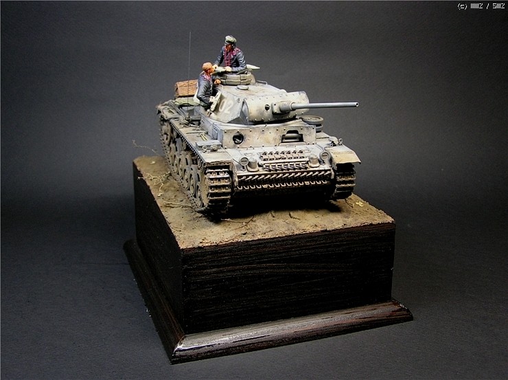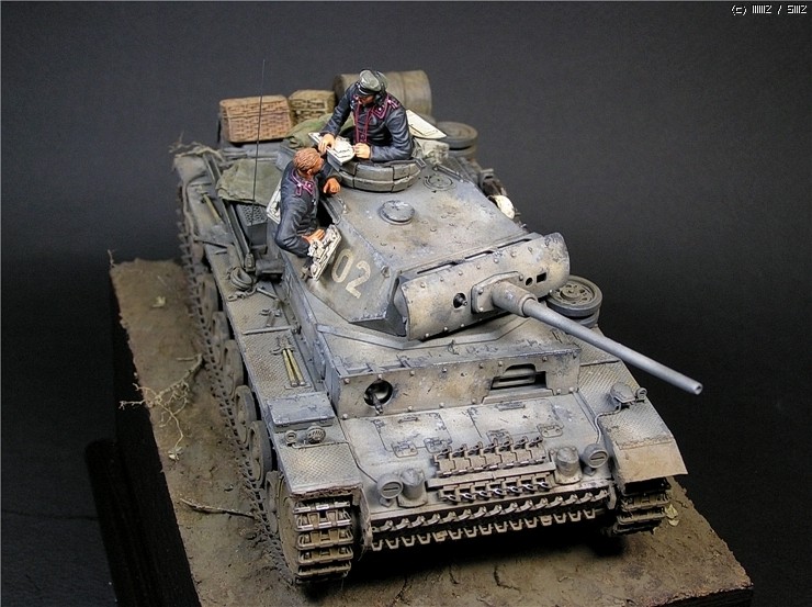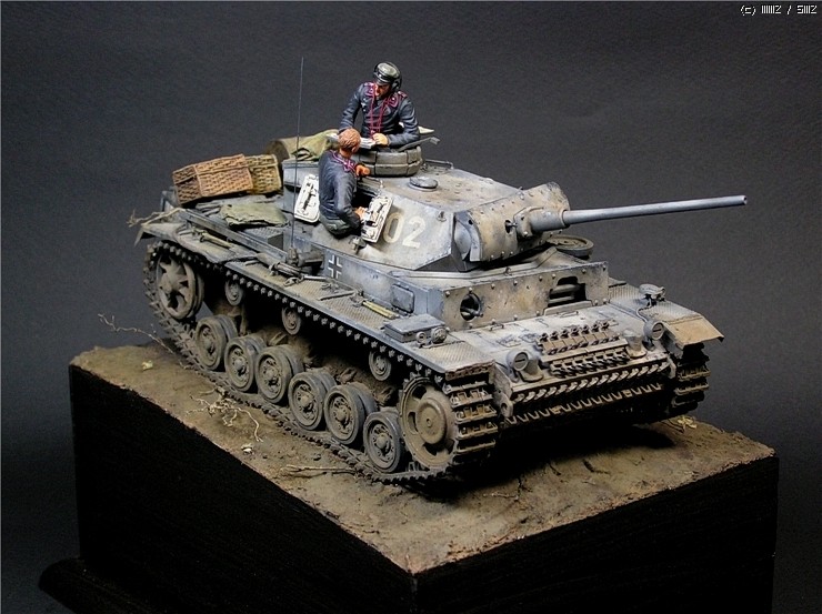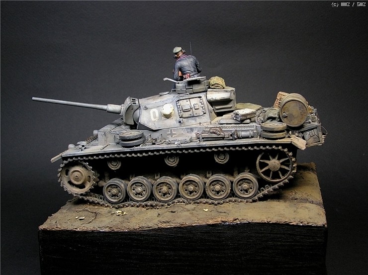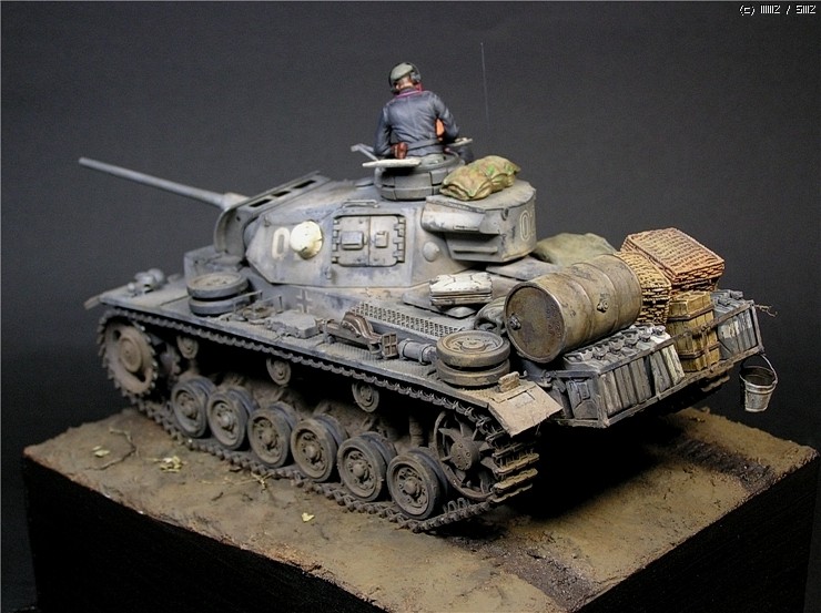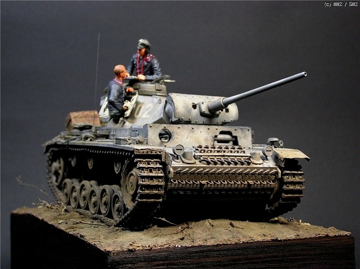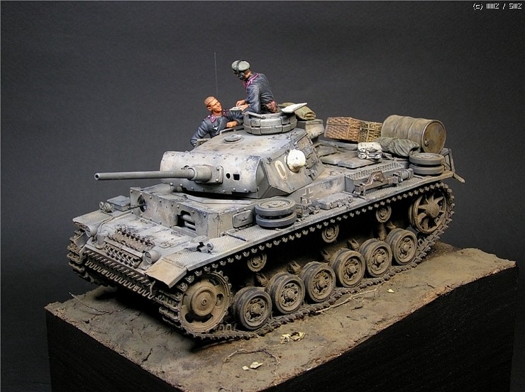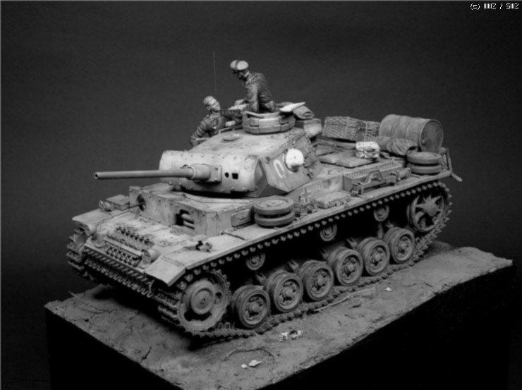 이번에 사용한 키트는 타미야의 3호전차 L형입니다. 출시당시만해도 3호전차의 결정판적인 키트였지만 드래곤에서 3호 라인을 스마트키트로 쏟아내는 요즘상황에서 보면 '고전프라'에 해당하는 모델입니다^^. 그럼에도 불구하고 키트는 타미야 명품답게 완벽한 조립성을 보여줍니다~ 제작과 관련한 내용은 요 바로 전 워크벤치에 업로드한 내용을 참조하시기 바랍니다. 전체적인 색감은 저먼그레이에서 출발했으나 짙은색의 난해함때문에 동계위장이 벗겨진 초봄 정도의 상태를 가정하여 흰색도 아니고 저먼그레이도 아니고 그렇다고 그레이도 아닌 애매모호한 색상을 표현하는데 주력하였습니다.