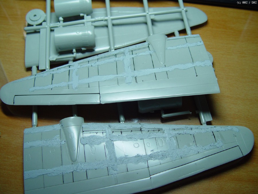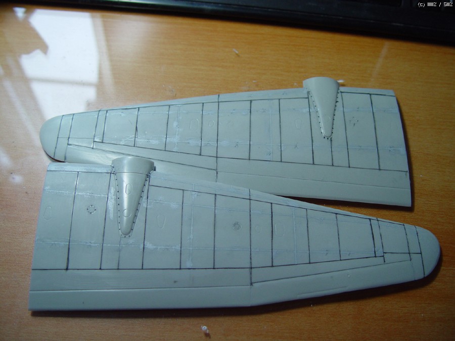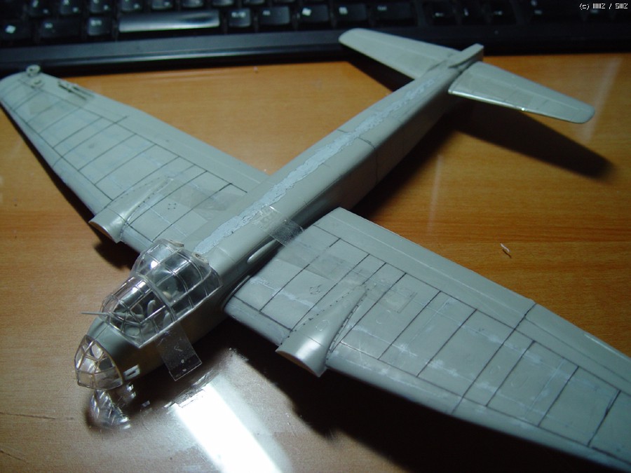 Ju88에 대해 무지한 나로선 처음엔 뭐가 문제인지 잘 몰랐지만 예전 암즈 앤 모델즈에 아온 드래곤 Ju88 제작 사진과 비교해 보니 조금 잘못 된 정도가 아니라 날개 상면의 패널라인이 완전 엉터리였다.