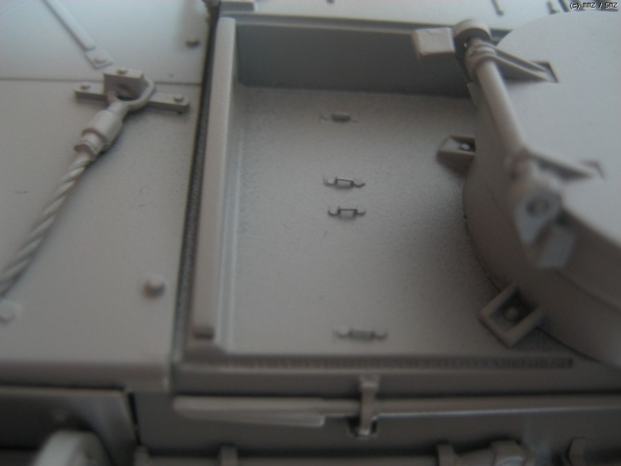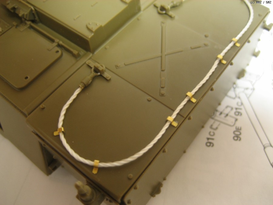 포탑위에 견인 와이어는 키트의 부품을 잘라내고 전에 쓰고 남은 나일론줄과 애칭부품으로 만들어주었습니다. 장비품올리고 나면 다 가려지는 부분이네요!!