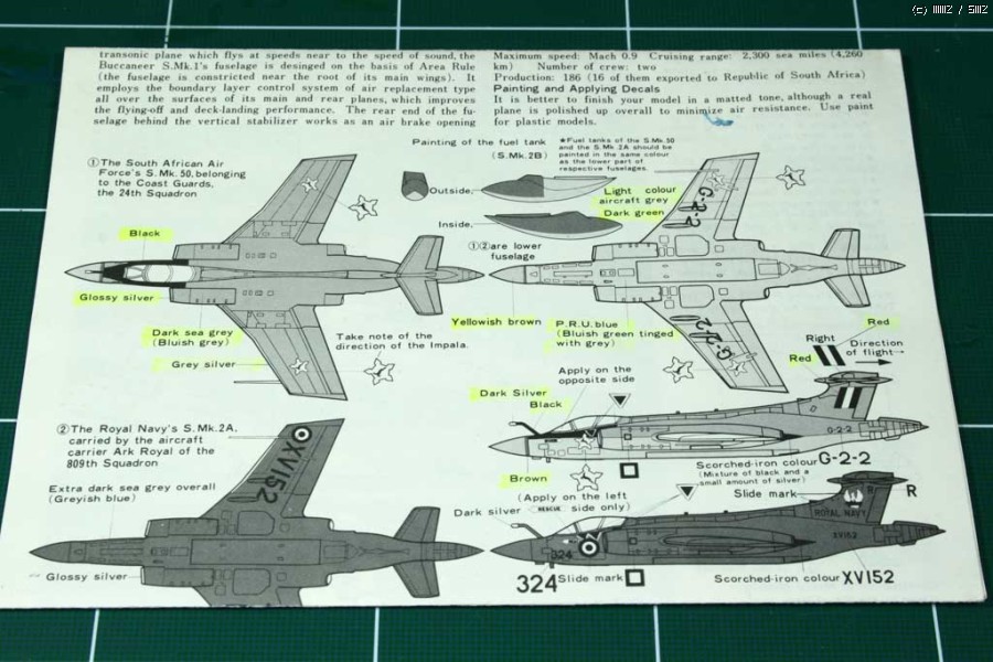 영국외에 유일한 사용국가는 남아프리카공화국이 공군기로 사용을 했습니다. 2010년 원드컵이 열리는 나라 남아프리카. 뉴질랜드에 있을때 남아프리카에서 온 친구가 꽤있어서 남아프리카에 대한 느낌은 남다르다. 남아프리카공군기를 본 기억이 없어서 남아프리카 공군기로 제작을 했습니다. 인터넷을 찾아봐도 작례는 없고 다이카스트 완성기가 하나 있어 도색에 참고를 했는데 내 맘대로 조색입니다. 설명서에도 요즘처럼 XF-1 하는 식으로 나오질 않고 Dark sea grey (Bluish grey), P.R.U Blue (Bluish green tinged with grey) 이런식으로 표기가 되어 있어서 대충 조색해서 사용했습니다.