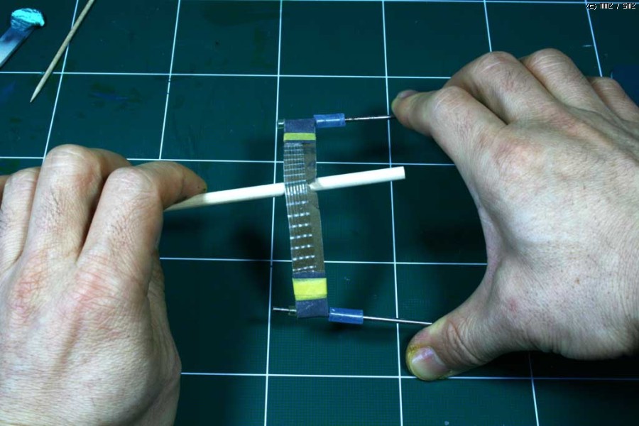 오랫만에 비행기 작업을 하다보니 전에 만들어 두었던 자작 샌딩툴을 사용했는데 혹시 도움이 될까 싶어 올립니다. 강철사(피아노선)을 이용해서 구부린후 샌드페이퍼를 적당한 폭으로 잘라 양쪽을 접어 고정할수 있는 구멍을 만들어 사용합니다. 샌드페이퍼가 쉽게 ㅤㅉㅣㅅ어질 우려가 있어 뒷면에는 셀로테잎등을 덧붙여 보강을 합니다. 접히는 부분도 마스킹테잎등으로 말아주면 튼튼합니다. 이상태로 곡선진 부분을 샌딩해주면 깨끗하게 곡면을 얻을수 있습니다.