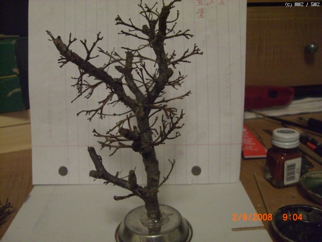 2:송곳이나 핀바이스로 나뭇가지마다 구멍을 뚤어줍니다 (평소에 나무를 잘 봐두는 센스가 필요)