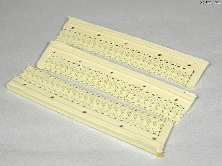 다 좋은데.................. 이킷의 가장 문제점인 트랙입니다. 그냥 간단히 말해서 쓰레기이죠.. 형태나 디테일을 보기전에 레진의 사출상태가 정말 개판입니다. 이런 부품을 만들라고 넣어준건지.. 사실 트랙은 이 제품만의 문제점은 아닌듯 합니다. 레전드 제품중 트랙을 포함한 모든 킷의 문제이죠.. 수축때문에 트랙들 사이가 1mm 좀 못되는 틈이 있는데다가 온갖 구석에 실리콘 형틀이 뜯겨져 그 공간을 레진이 차지하고있습니다. ㅜㅜ.. 가격을 2~3 만원 더 받아도 좋으니 제발 트랙 사출방식은 좀 바꿔줬으면 좋겠습니다.