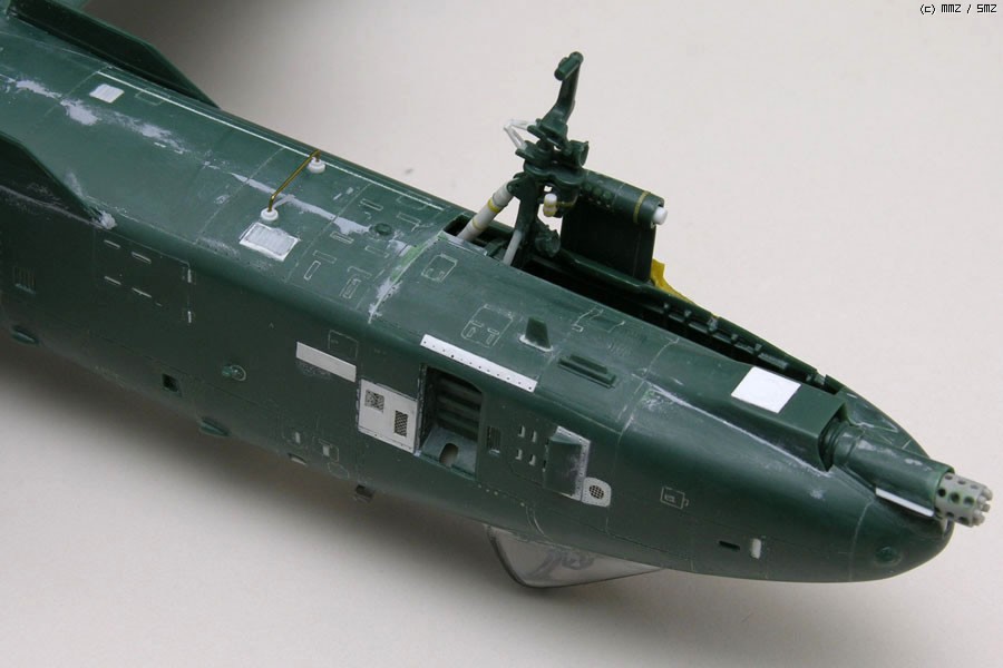 기체하부의 안테나도 레벨제품과 실기체와 설치위치가 틀려서 수정해 주었고, 제품에는 기수부분에 마름모 모양의 돌기물이 있는데 실기체에는 없기에 과감히 밀어버렸습니다.