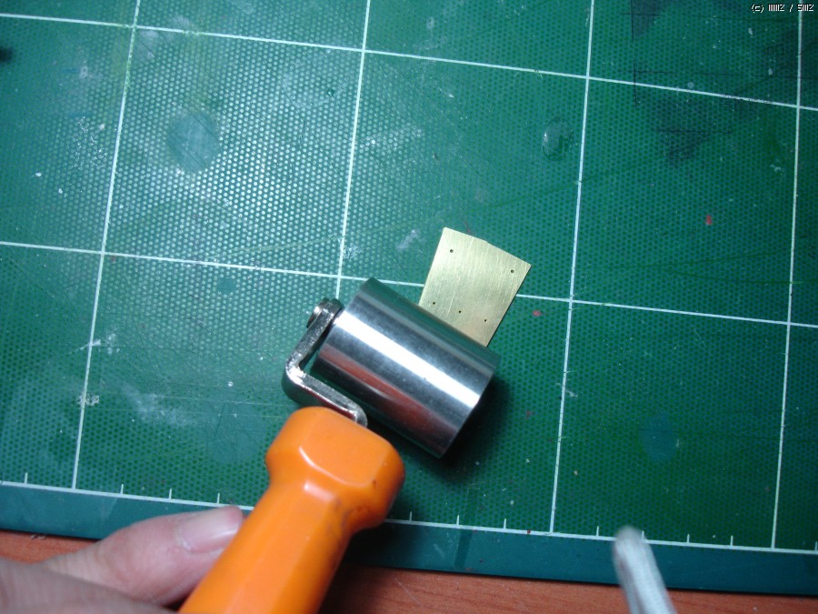 고무판에 넣고 밀었더니 제법 휘어진 에칭판이 잘 펴지더군요.