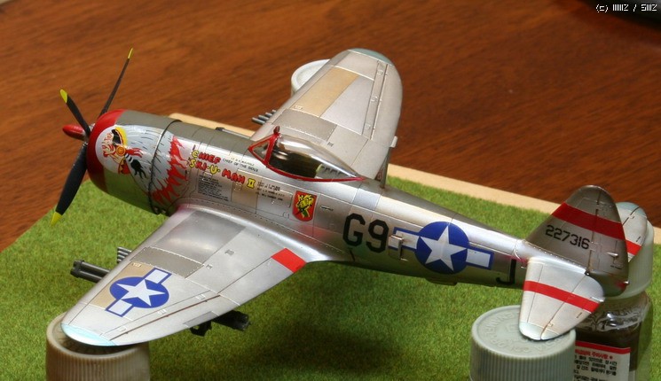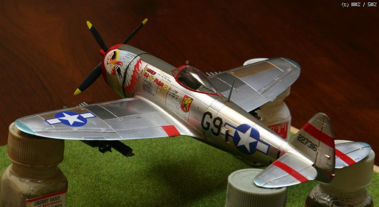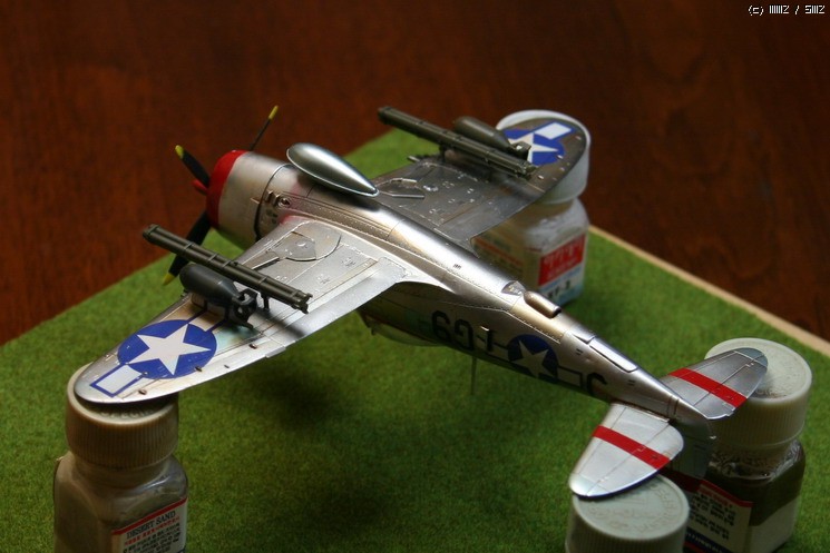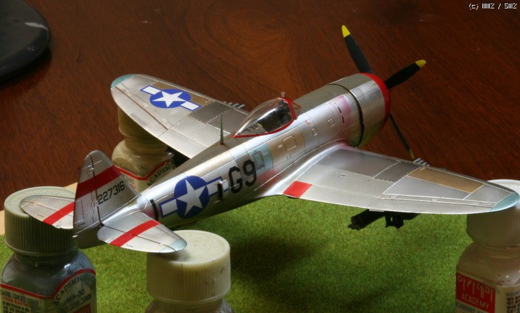 아카데미 1/72 P-47D입니다. 그냥 은색비행기를 만들어 보고 싶어져서 만들어 보았읍니다. 그간 사놓았던 이런 저런 금속색을 써 보았읍니다.