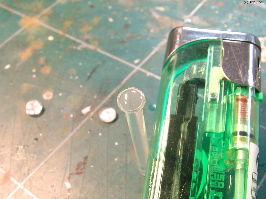 그 끝단에 라이타불을 타지 않는 거리를 유지하면서 서서히 녹이면 동그랗게 녹으면서 투명도가 장난아니게 됩니다.