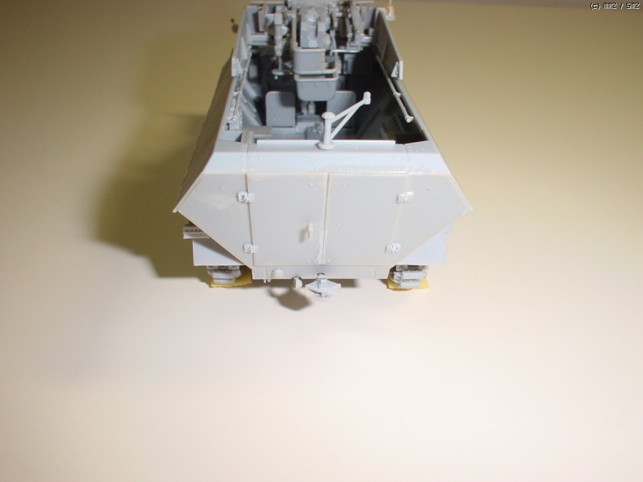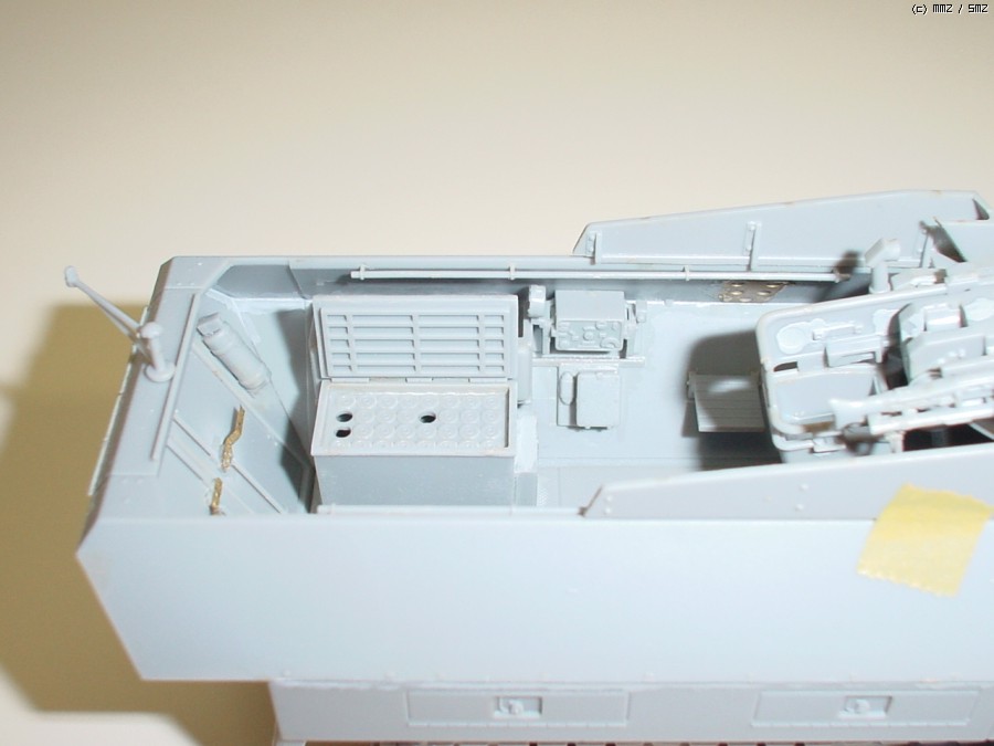 다른 드래곤 하노마그 씨리즈에는 차폭 표시대가 포함돼있는데, 이키트에는 없어서 afv 클럽제차폭 표시대,라이언 로어ovm,타미야 하노마그의 여분의 안테나 포스트를 유용했습니다.런너 늘린것으로 해드라이트 전선을 추가한 것 외에는 키트 그대로 입니다.