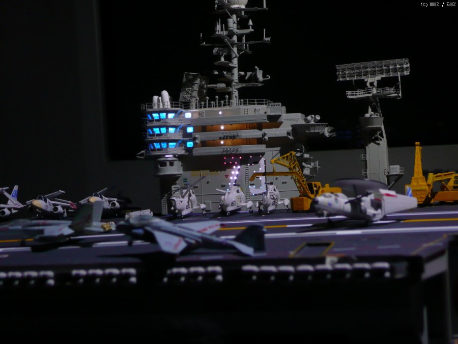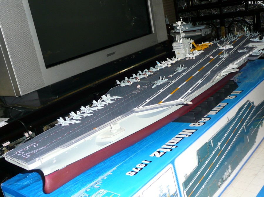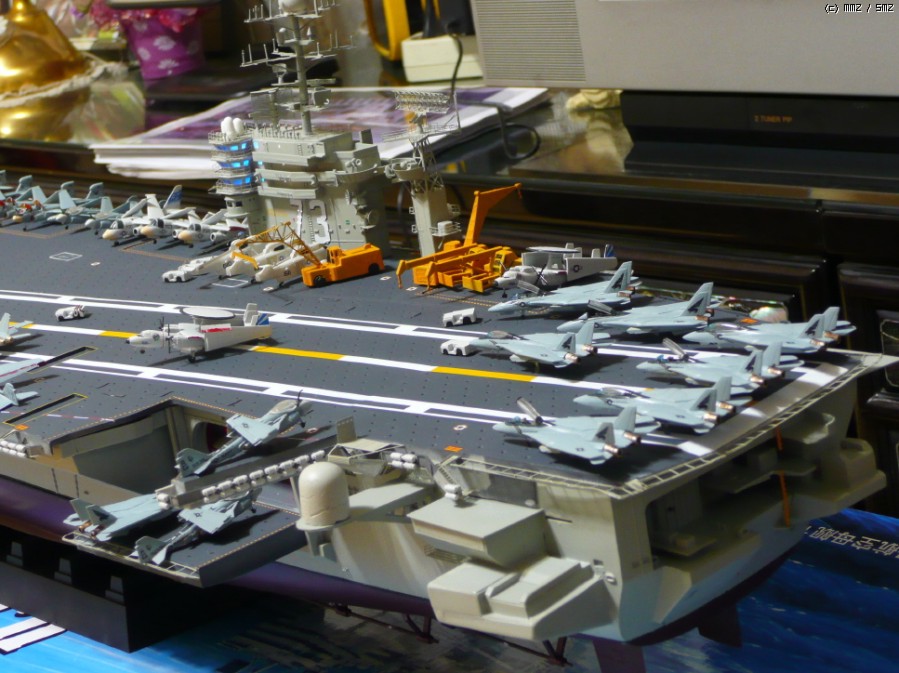 함재기는 트럼페터의 F-14, F/A-18C, A-6E, EA-6B, S-3A, C-2A, E-2C, SH-3H을 사용하고, WEM의 에칭 파트와 Star-fighters의 George washington 1996의 데칼을 사용하고, 프라울러와 톰캣의 윙폴딩과 캐노피 오픈에 신경을 썼습니다. 함 데칼은 GMM의 데칼을 사용했는데, 굉장히 얇아 조심해야 합니다.