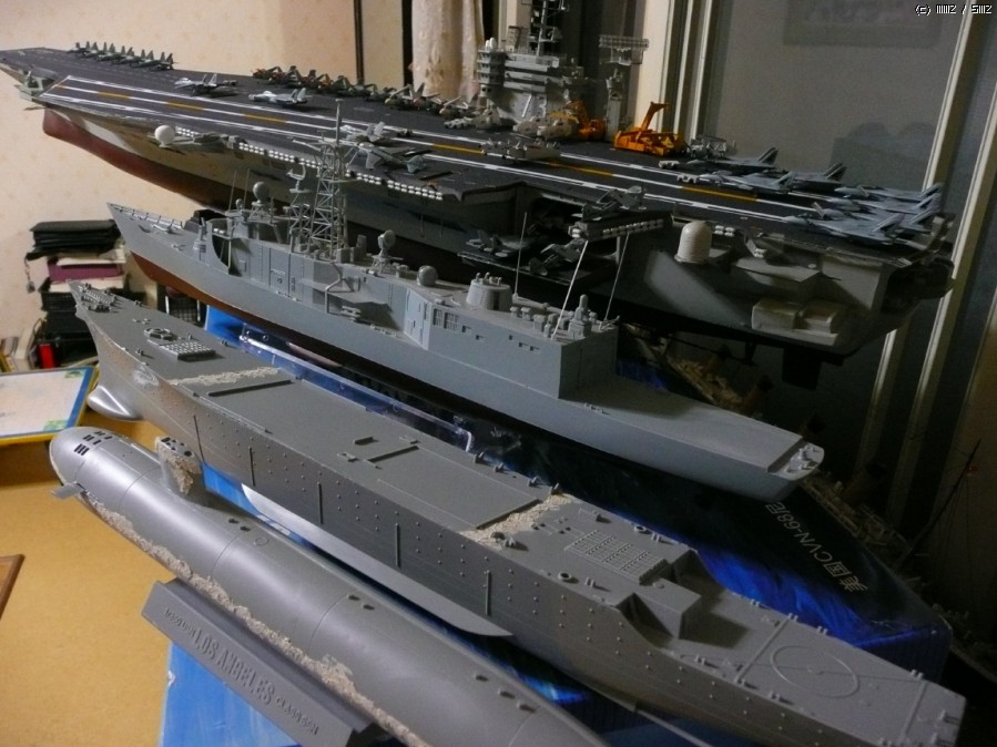 마지막으로 같은 준비중인 1/350 perry class fregate, alreigh burk class, los angeles class sub와 같이 찍어보았습니다.