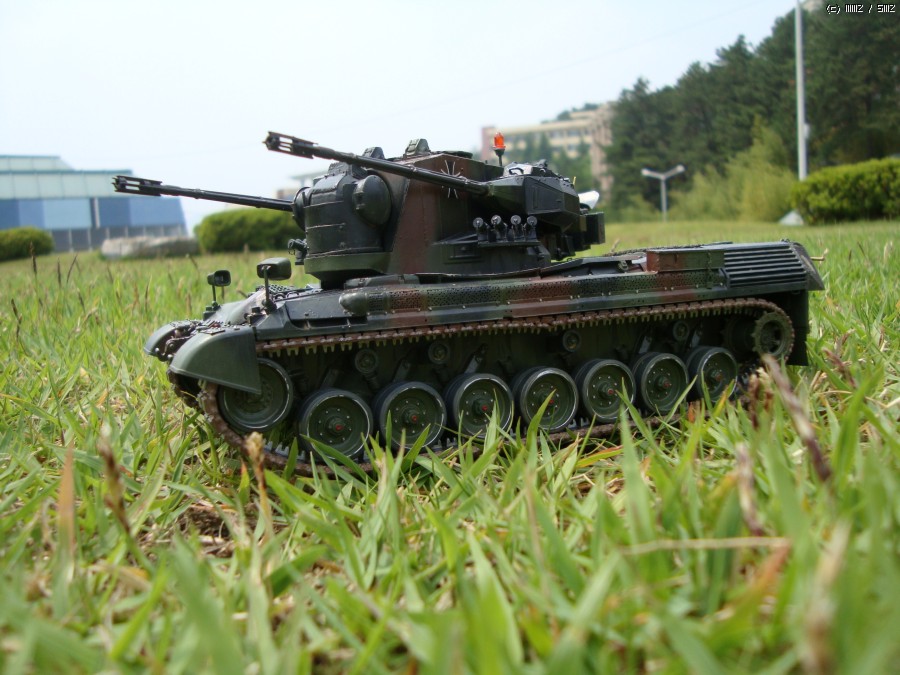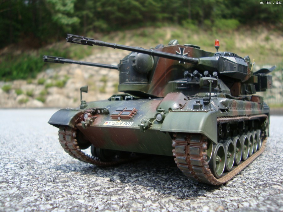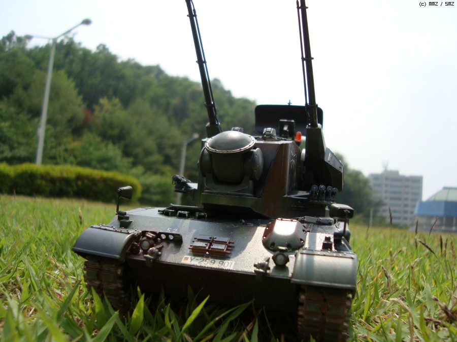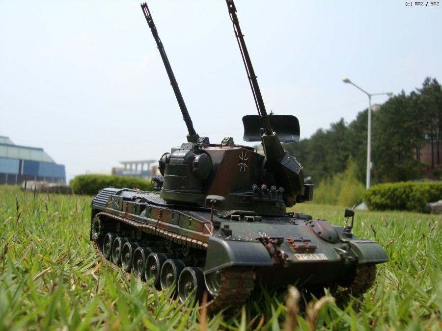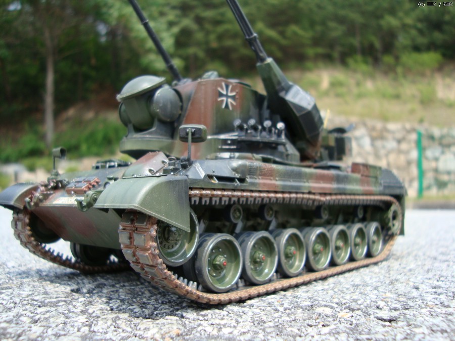 현재 독일 연방군에서 쓰고 있는 Gepard1A2로 개조하였습니다. 주된 디테일 업으로 수색레이더 내부 다뜯어 고치기,추적 레이더 내부 자작,35mm 기관포 내부 자작,수색 레이더 후방 전자장비 탑재 공간 증설및 자작 하였습니다.