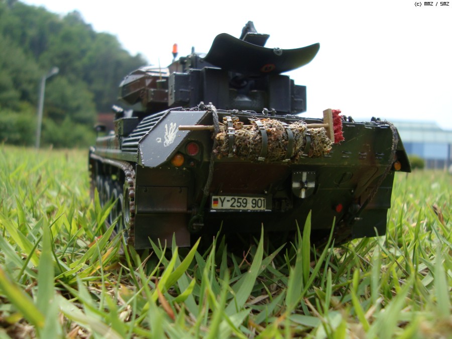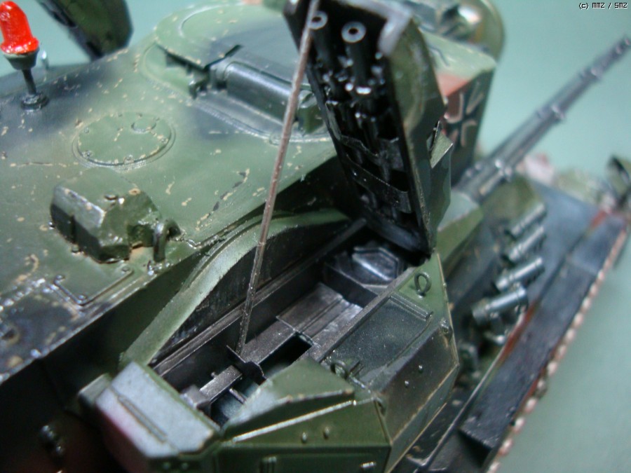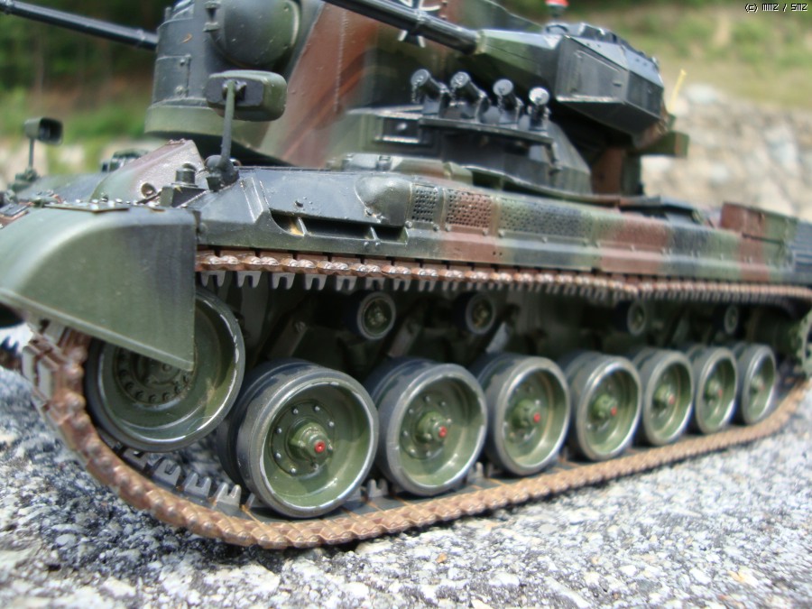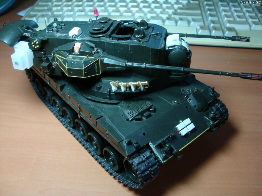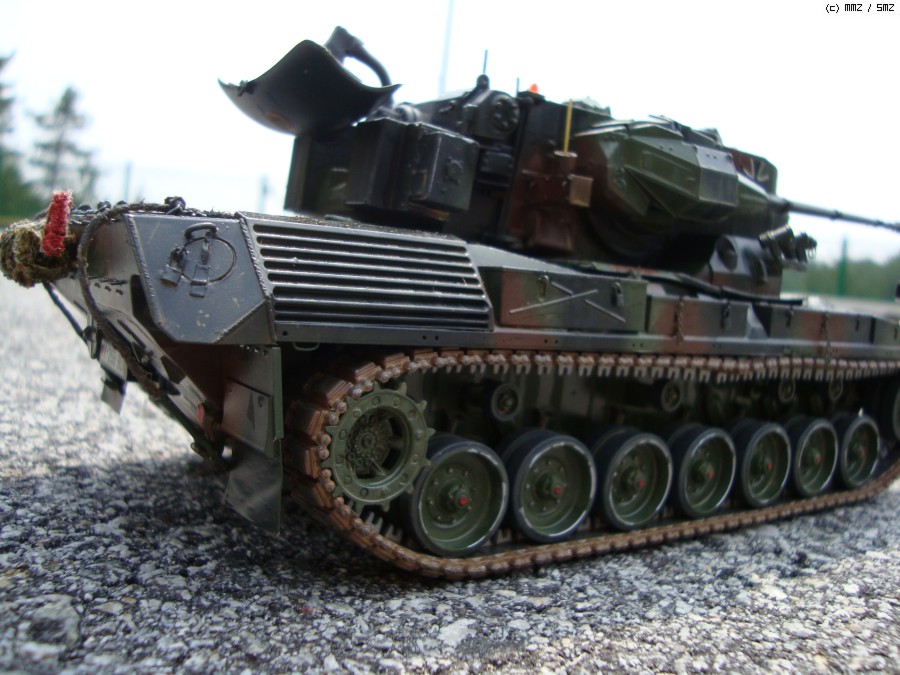 현재 독일 연방군에서 쓰고 있는 Gepard1A2로 개조하였습니다. 주된 디테일 업으로 수색레이더 내부 다뜯어 고치기,추적 레이더 내부 자작,35mm 기관포 내부 자작,수색 레이더 후방 전자장비 탑재 공간 증설및 자작 하였습니다.