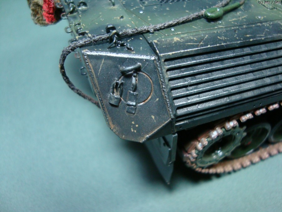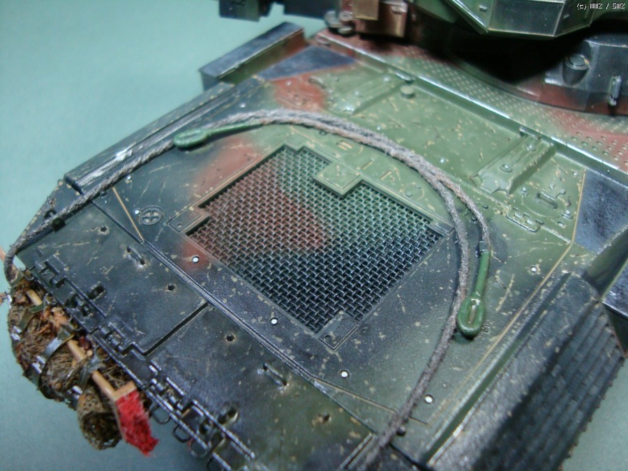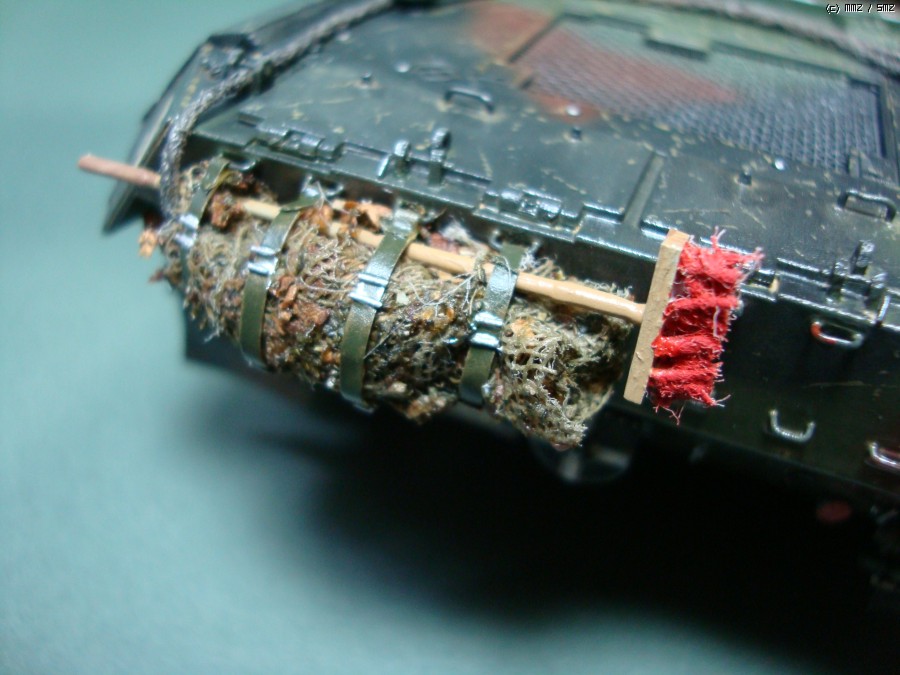 차체 후방의 위장망은 담배잎과 녹차티,거즈로 만들었고 빗자루는 굴러다디는 잡동사니로 만들었습니다. 실제 실물사진을 참고로 만들었는데 좋은 포인트가 되더군요^^