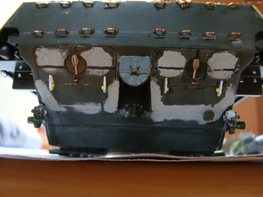 정말 만들면서 제일 힘들었던 35mm 기관포 내부 자작....이것 때문에 포기할까 라고 생각도 했던..결국에 어찌 저찌 오기로 황동판과 황동 파이프를 위주로 자작해서 내부를 만들었습니다. 금속 공예 같았던...덮개는 무게 때문에 철사로 지지대를 만들어 임시로 받혀주었습니다.