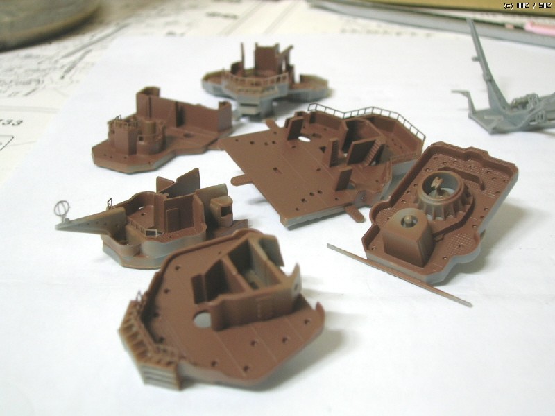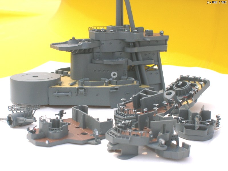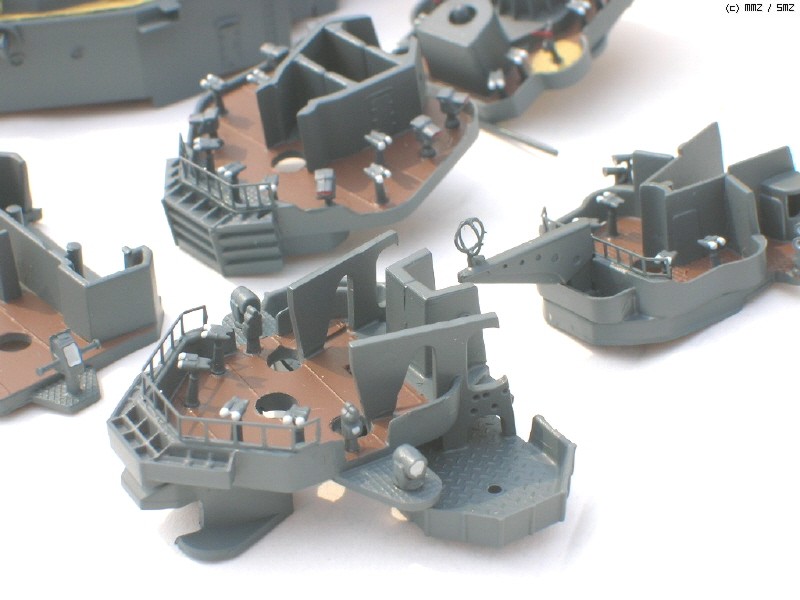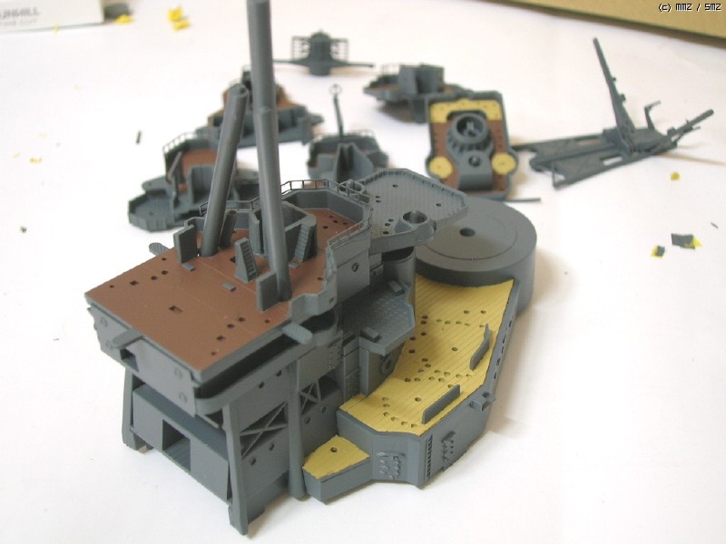 이 키트의 후장도 괜찮긴 한데 조금 볼륨이 약해보여서 몽땅 밀어내고 다른 배 만들고 남은 에칭과 런너를 이용해 전부 새로 만들었습니다. 추가된 사항은 역시 남는 에칭 쪼가리를 이리저리 변통해 만든 견시 관측소의 추가.