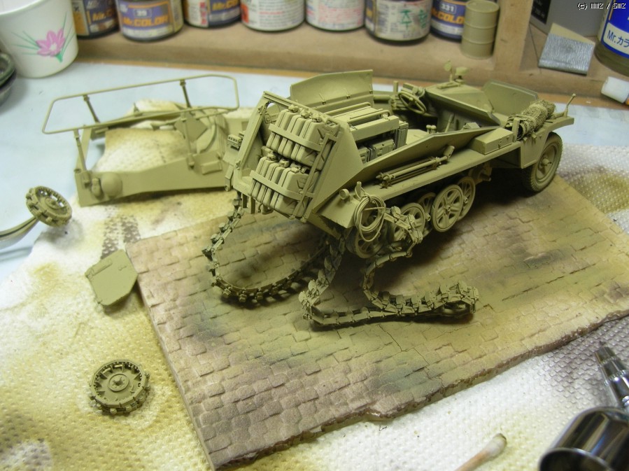 가조립상태..전체 베이스는 락카를조색 블랙브라운 톤으로 브러슁 하였습니다.