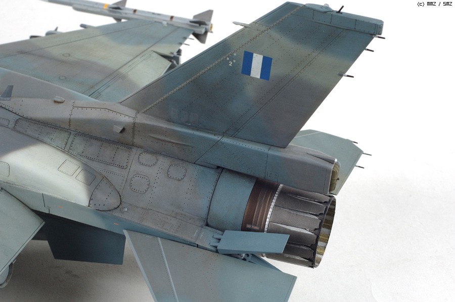 도색은 아크릴 도료를 기본으로 뿌려주었고 노즐은 SMP하우스 도료를, 데칼은 하비데칼 스텐실과 ZOTZ데칼에서 국적마크만 사용하였습니다.또한 디테일 업을 위하여 크로스델타의 F-16용 에칭세트를 사용하였습니다.