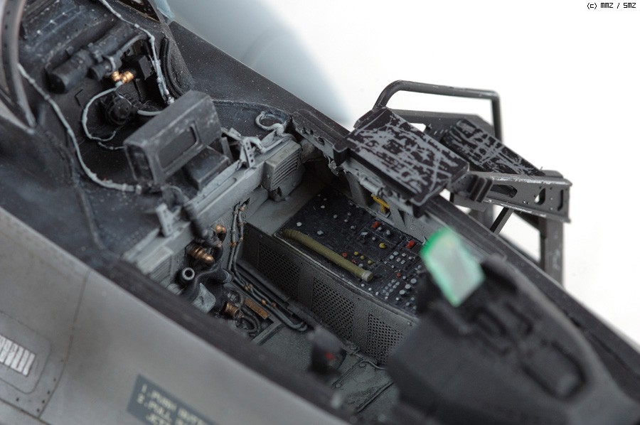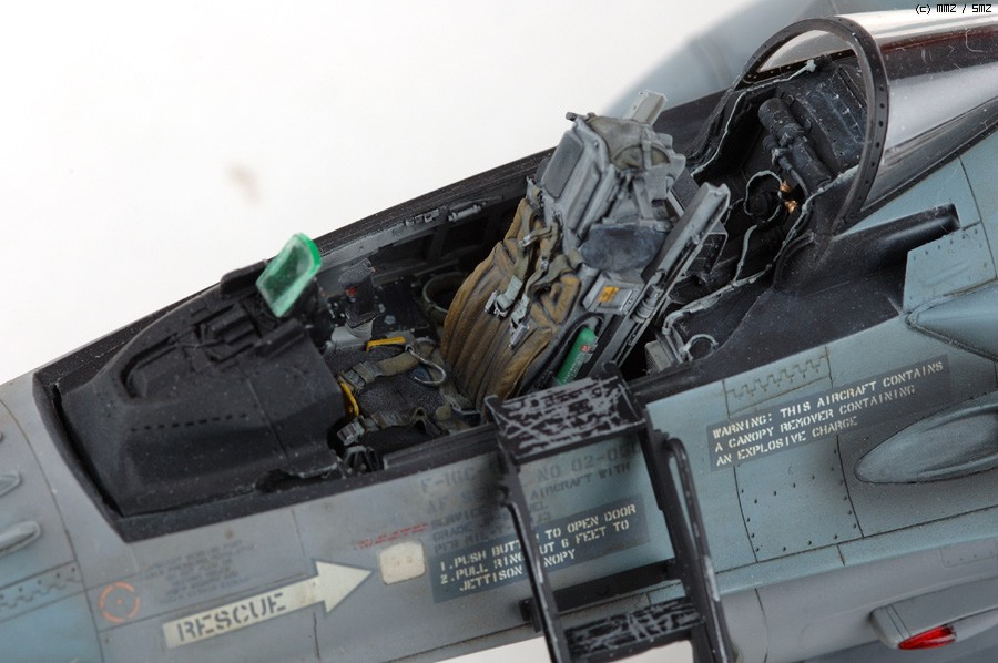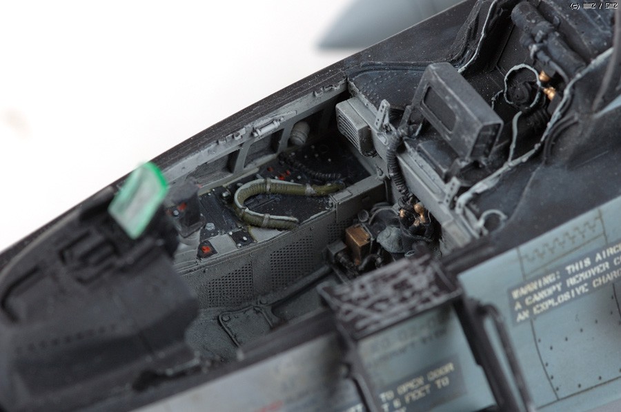 아카데미 키트를 기본으로 블랙박스 콕핏을 심어 주었고 Skunkmodelworks사의 CFT를 장착, 랜딩기어 내부에 배선을 자작하여 넣어주었습니다. 그리고 세부적으로 조금씩 바뀌는 것을 손질하여 업데이트 하여 주었습니다.