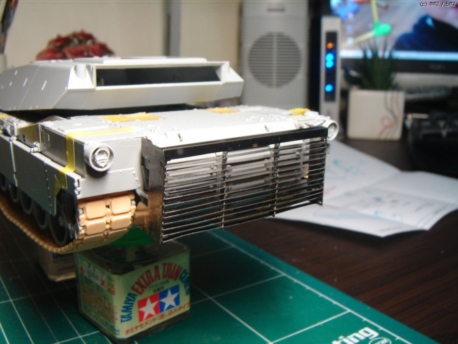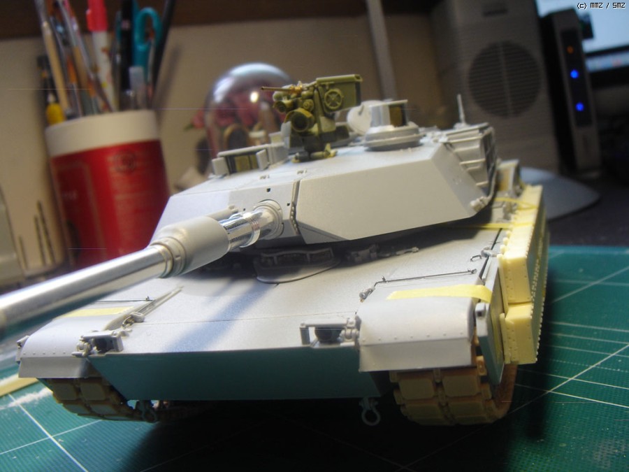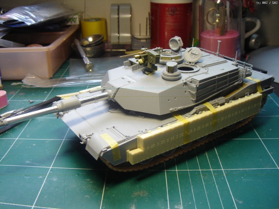 토요일인데 밖에 비도오고 아들도 낮잠을 자고 해서 모처럼 워크벤치에 사진이나 한번 올려봅니다. 최근에 만들고 있는 드래곤 M1A2 SEP을 TUSK (Tank Urban Survival Kit) 형태로 만들고 있습니다. 아직 조립중이라 마스킹 테이프로 임시고정을 해놓은 가조립이 많은 상태이고 전체 제작의 50%정도 진행된 상태입니다.